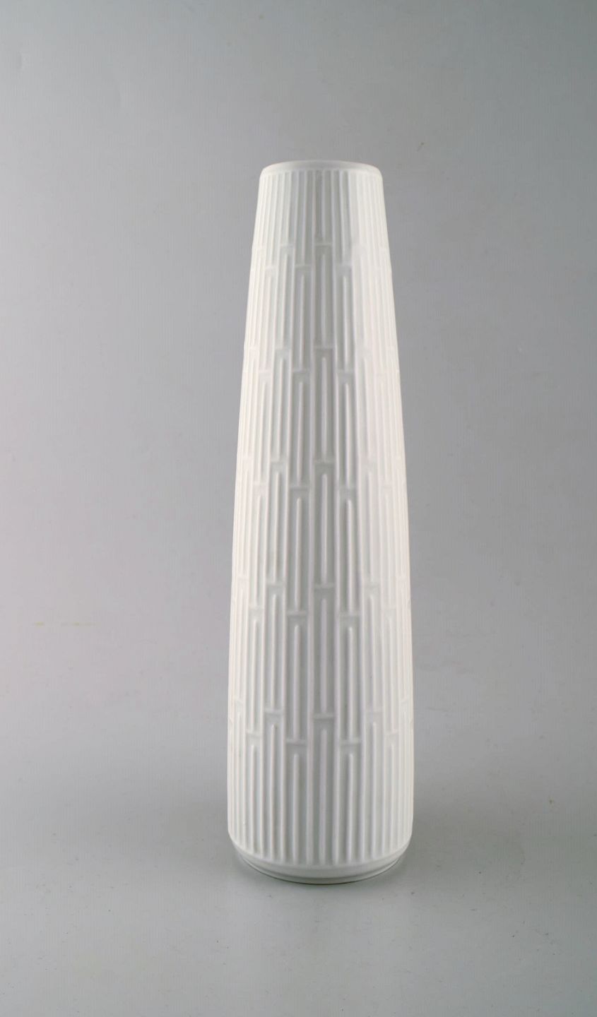 Large Meissen blanc de chine vase with geometric pattern. Stylish design, 1960's.