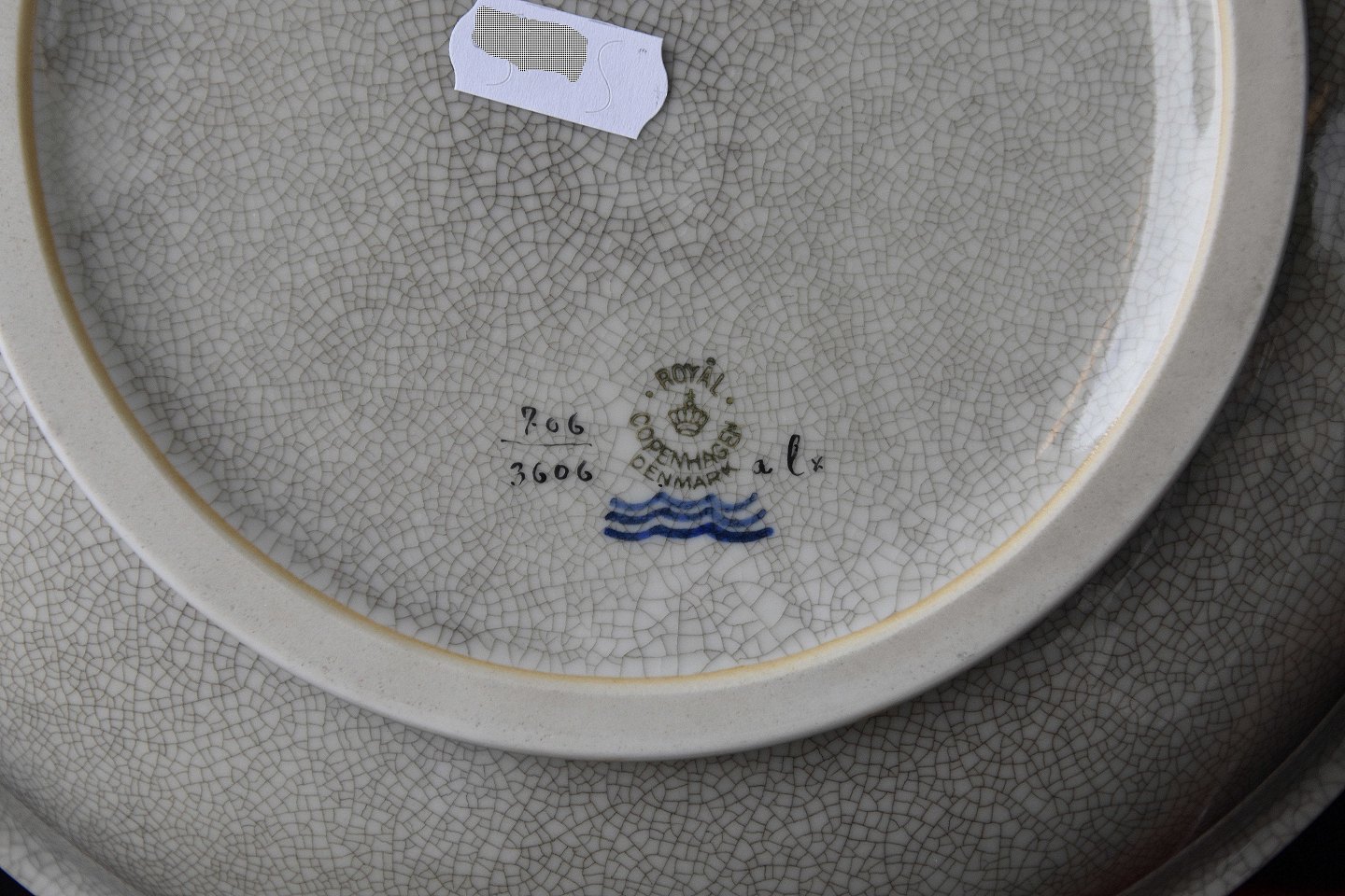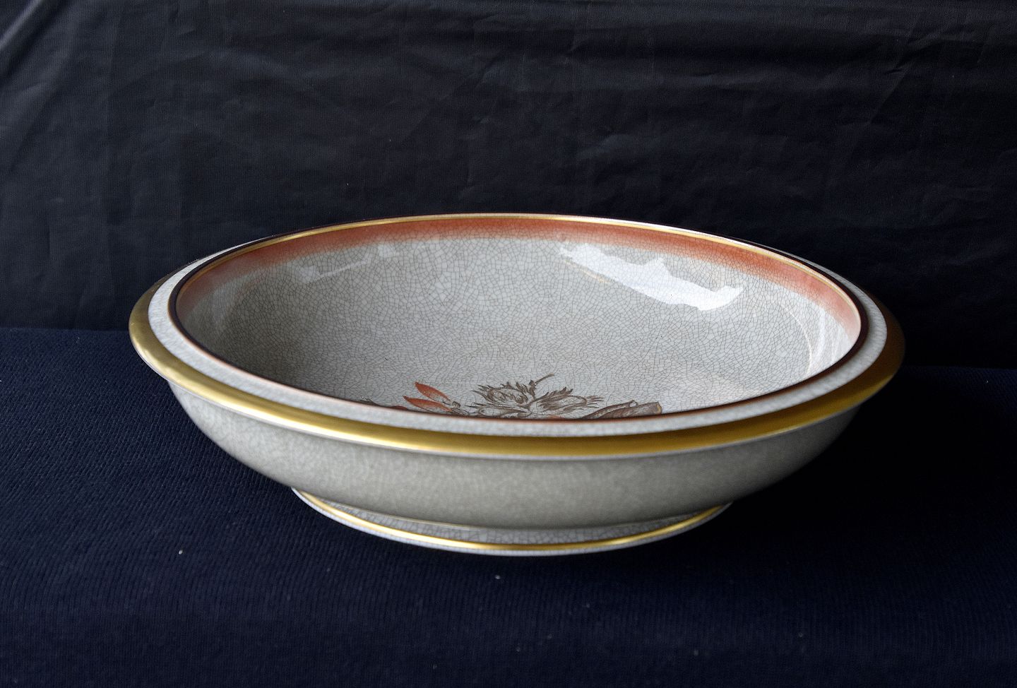 Royal Copenhagen, RC, Den Kongelige Porcelænsfabrik, KGL., krakelé, fad, guld kant, frugt, blomster, farver