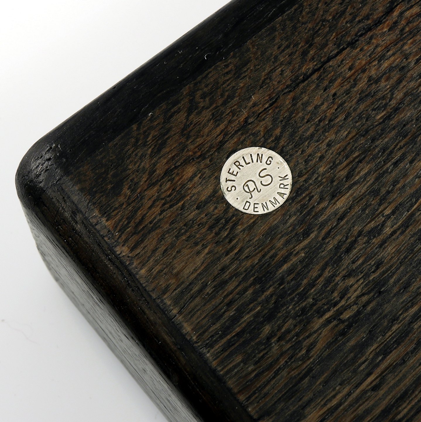 Æske i moseeg med sterling sølv intarsia. 1960erne