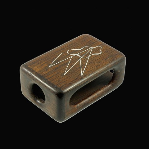 Frantz Hingelberg. Tændstik boks i moseeg med sterling sølv intarsia. 1960erne