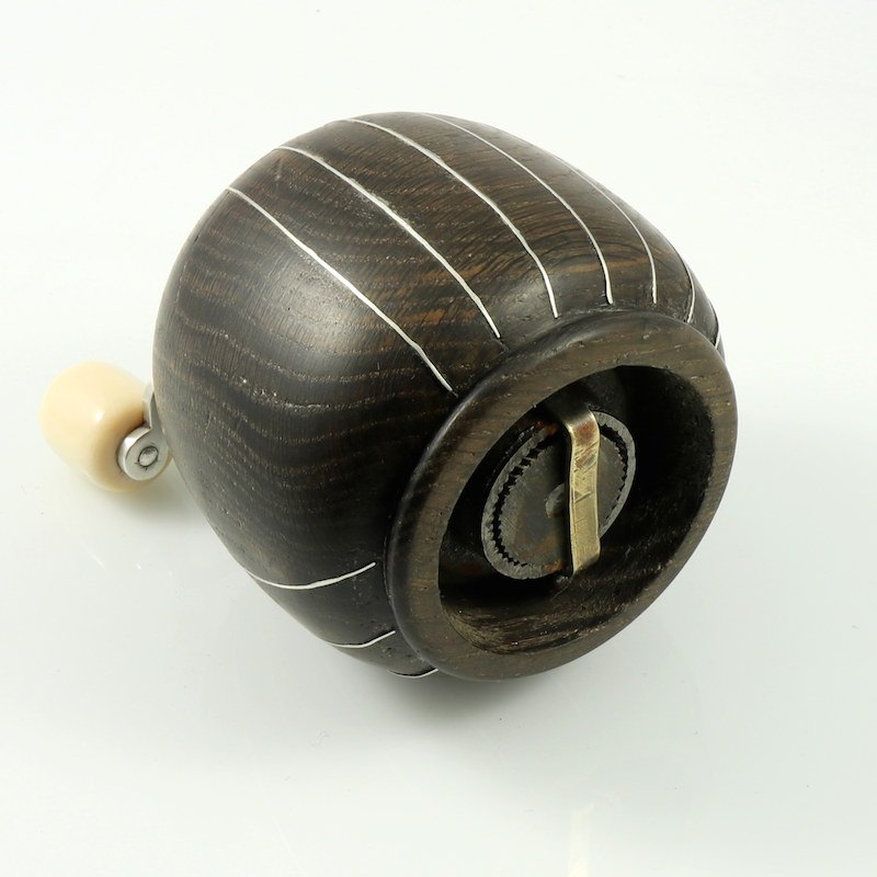 Frantz Hingelberg. Peberkværn i moseeg med sterling sølv intarsia. 1960erne