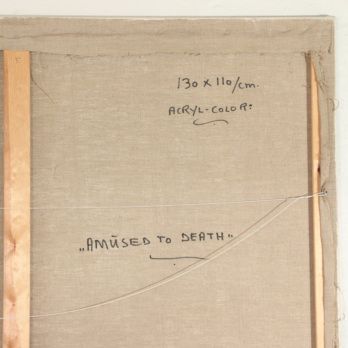 Surrealistisk maleri af Hans Nielsen f. 1923 d. 1998, 'Amused to Death'