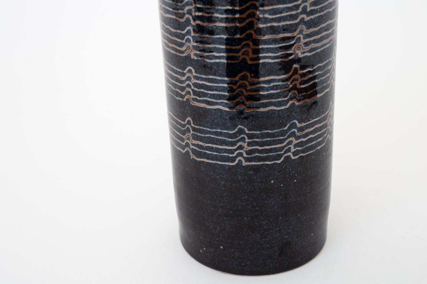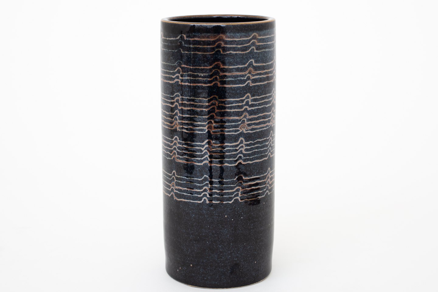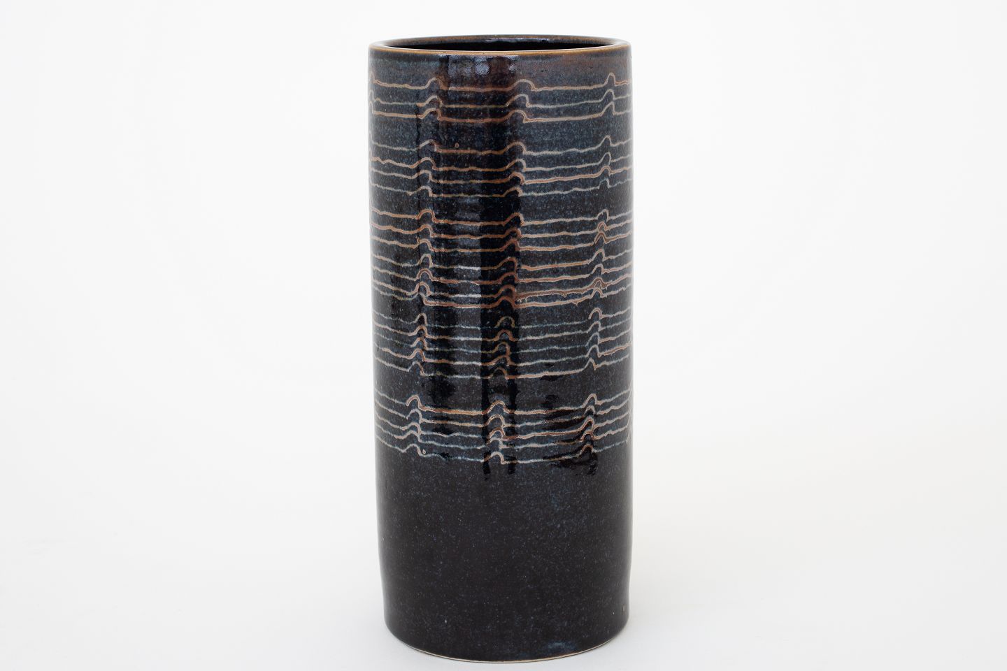 Cylindervase i stentøj med jernglasur. 'Opus Scolasticum'