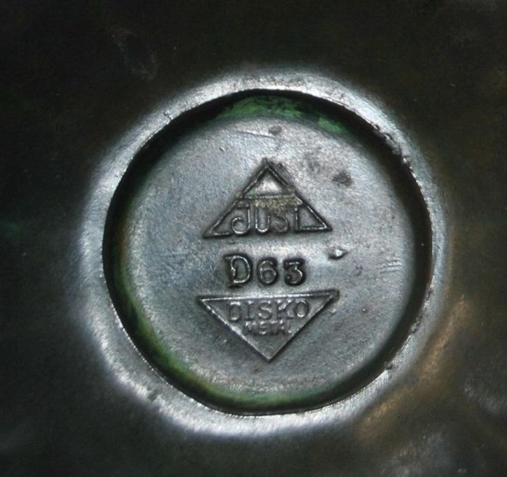 Just Andersen askebæger med kvindefigur, 20. årh. Danmark. Diskometal. Stemplet med nummer: D 63. H.: 6,6 cm. Dia.: 11,5 cm.