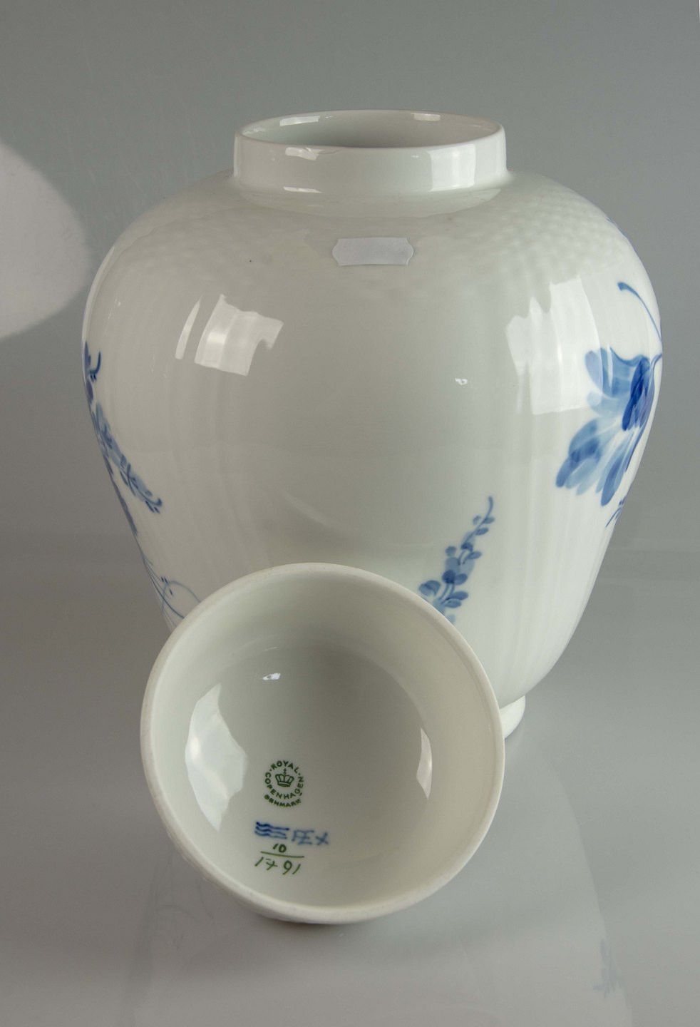 Høj krukke med låg i porcelæn i serien svejfet flettet Blå blomst nr. 10/1791