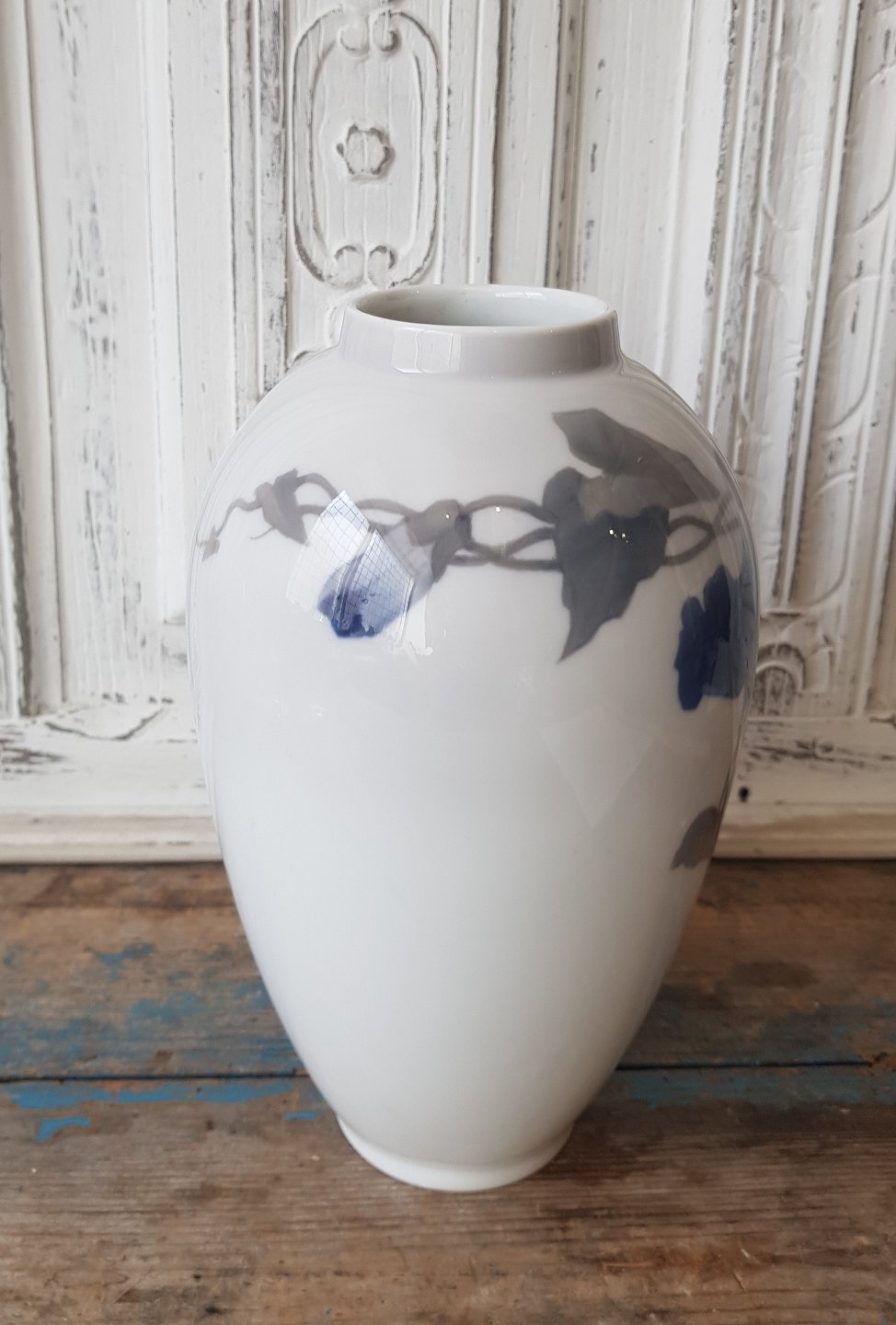 Royal Copenhagen Art Nouveau vase dekoreret med blå snerler.