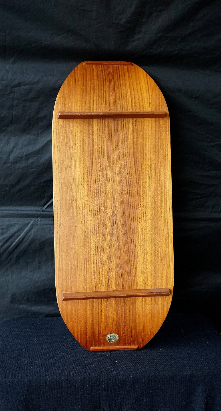 Stor teaktræs serveringsbrædt, med mede kanter og mede fødder