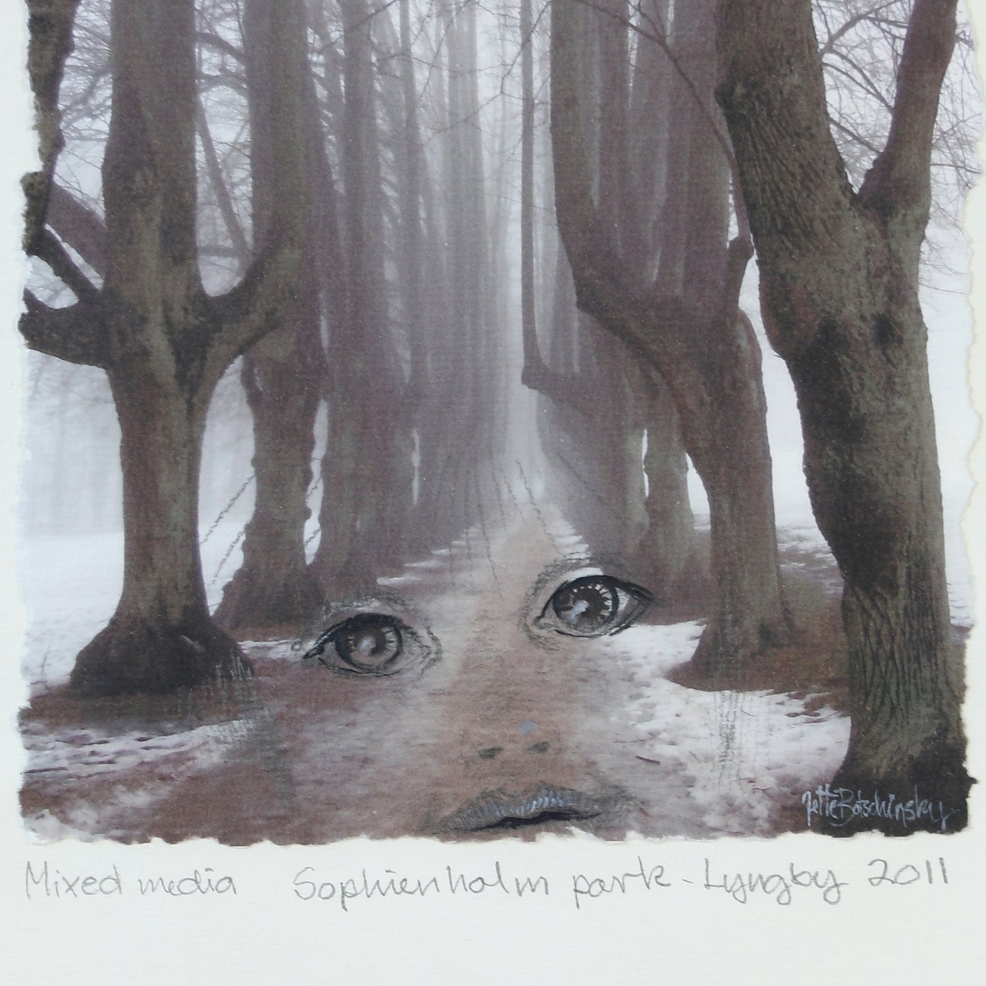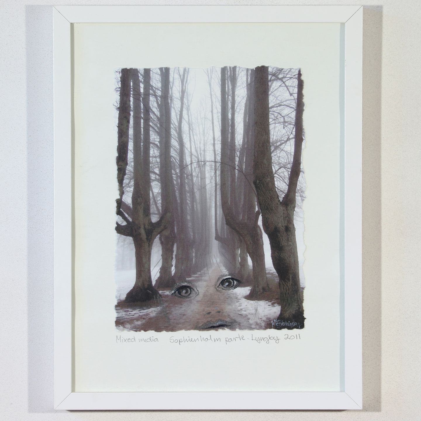 Jette Botschinsky mixed media 'Sophienholm Porte, Lyngby' 2011 signeret samt titel skrevet med blyant rammemål højde 42 cm, bredde 32 cm