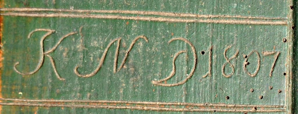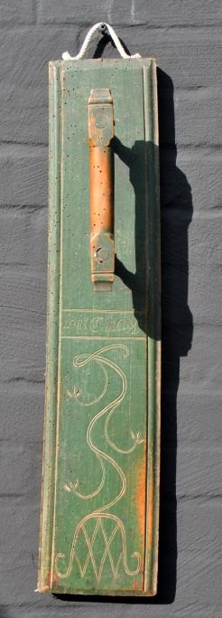 Roll board, 1807 Denmark. Beech. Green painted. With decorations. Length: 62 cm.