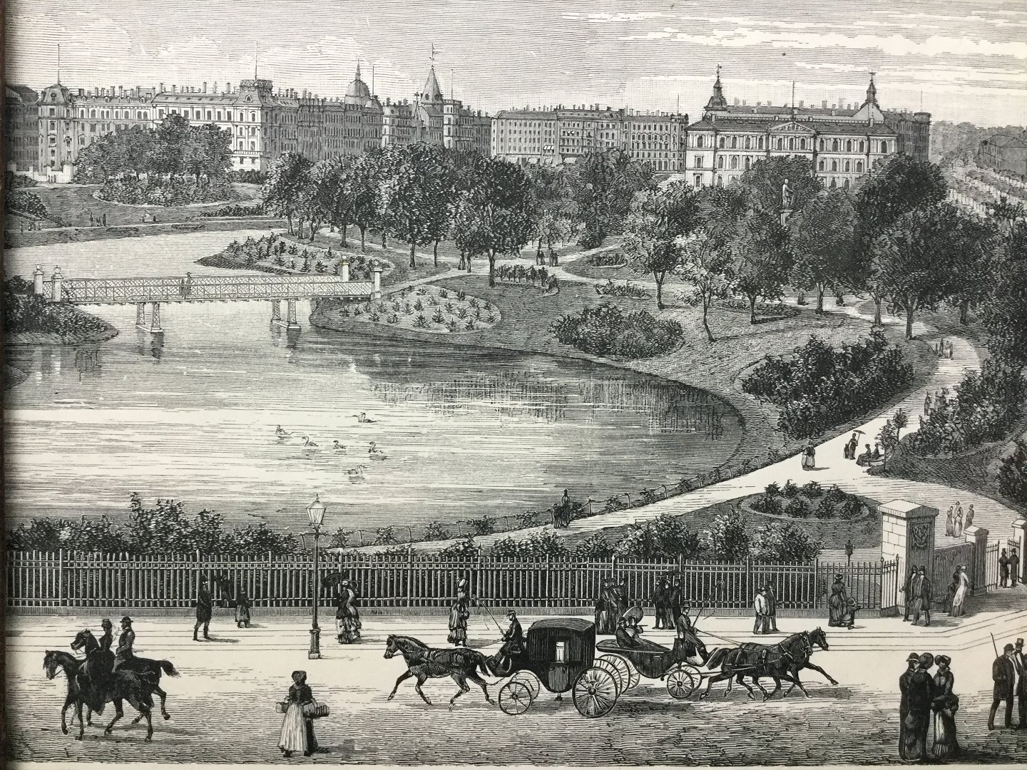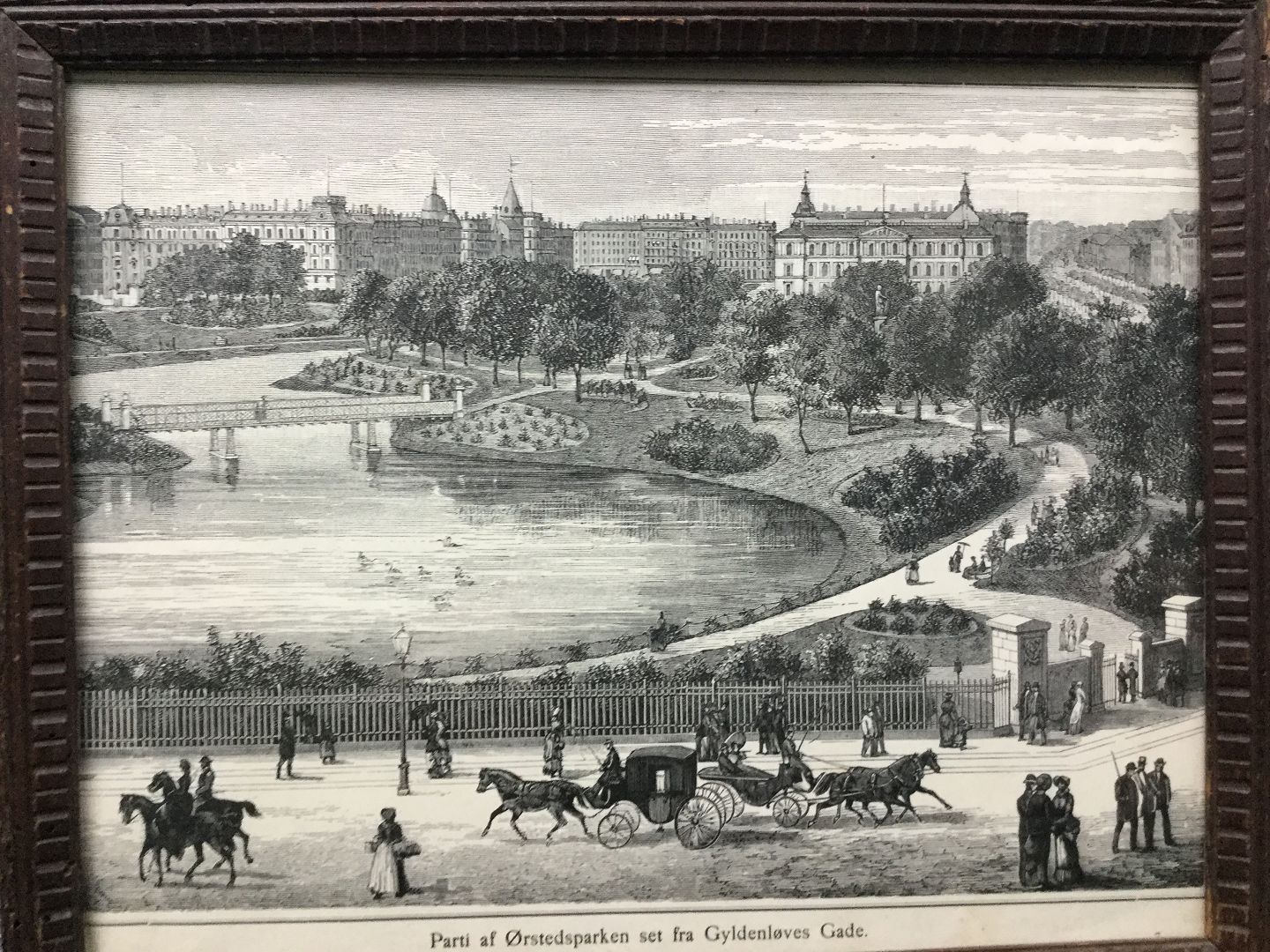 Text available in Danish: Xylografi af Christian V. Nielsen 1882 - Parti fra Ørstedsparken.