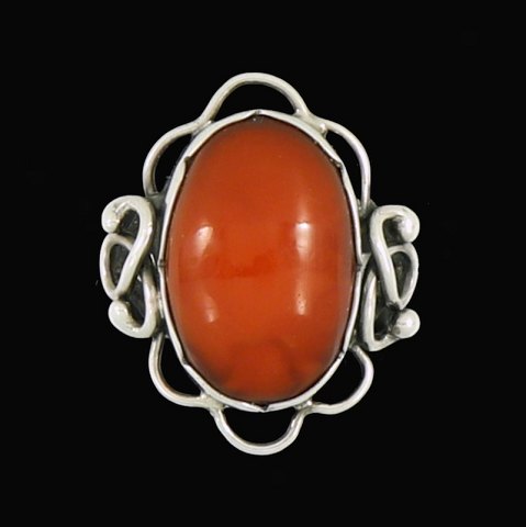 Text zugänglich auf Dänische: Ulrich Johannsen. Skønvirke ring i sølv med rav.