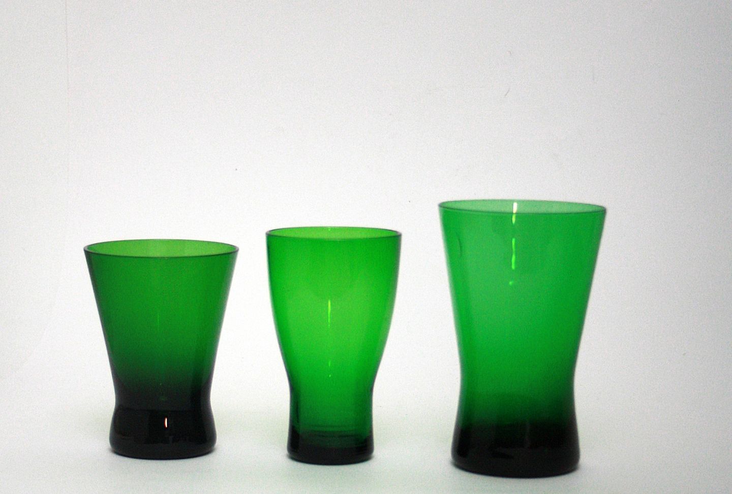 Ædelgrønne vandglas. Enkelte med luftbobler. Pris: 125 kr. stk.