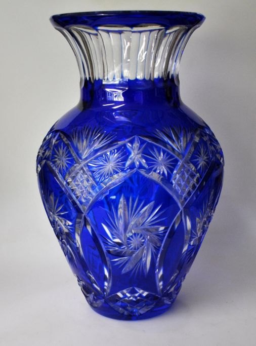 Violetta vase, 20. årh. Polen. Med slibninger i blåt overfang. H.: 30 cm. Med etiket.