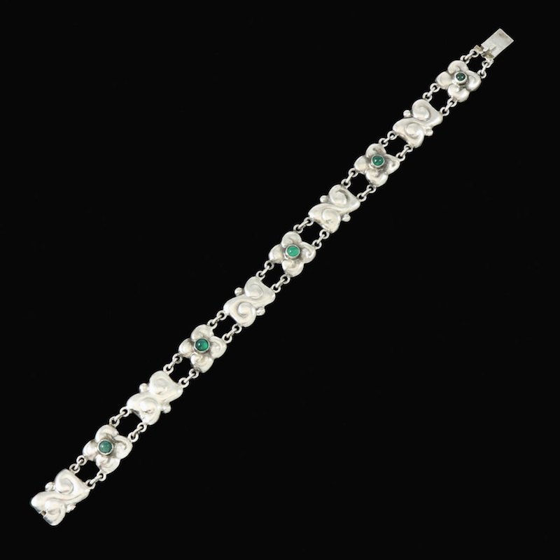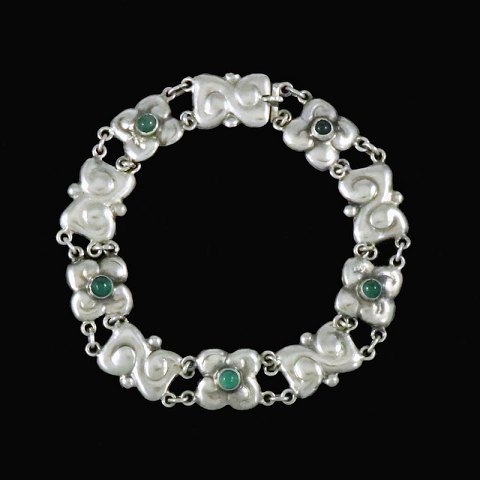 Dansk Skønvirke Armbånd i sølv med grøn agat.