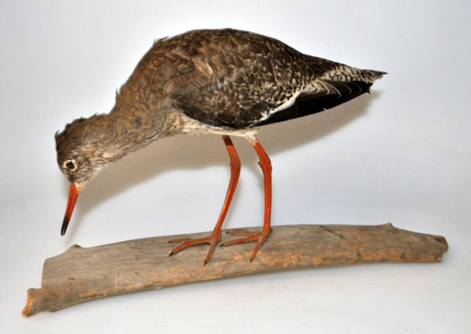 Udstoppet rødben, Tringa tòtanus, 20. årh. Danmark.