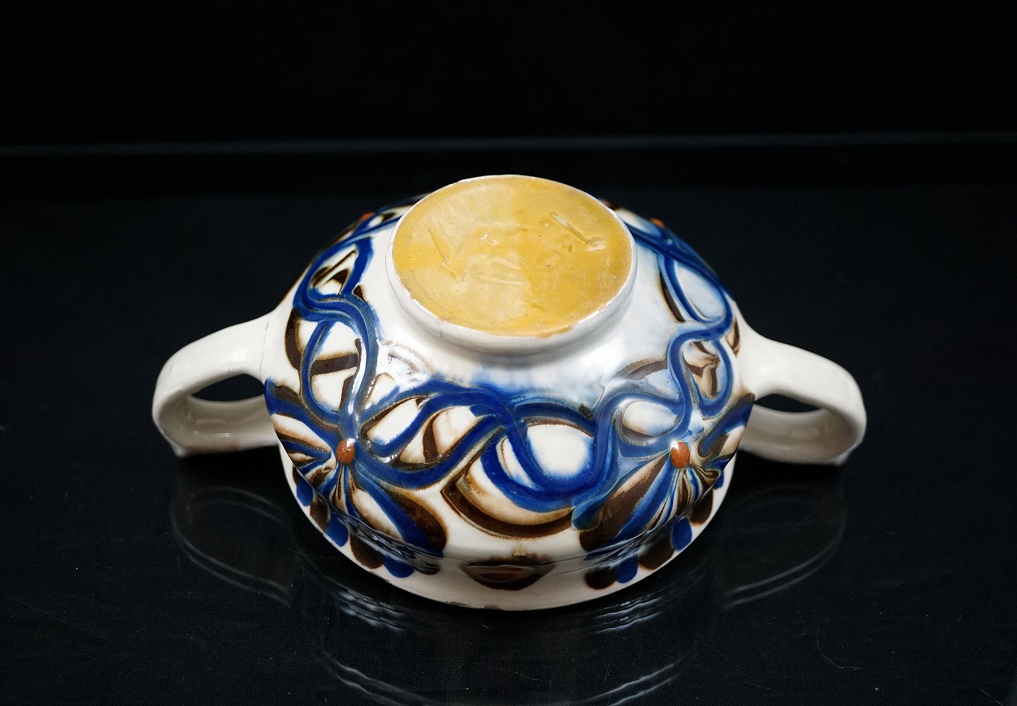 HAK skål med hanke, dekoration kohornsteknik/kohornsglasur