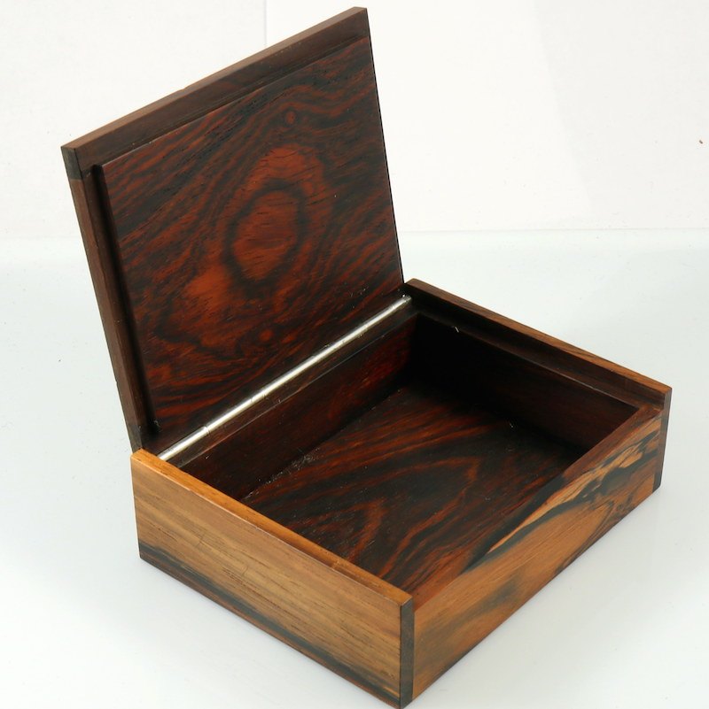 Hans Hansen. Æske i Rio-Palisander med indlagt sterling sølv. 1960erne.