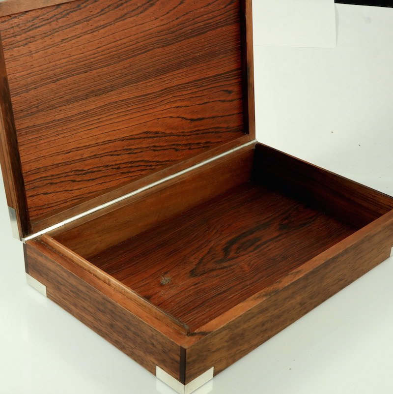 Hans Hansen. Æske i Rio-Palisander med indlagt sterling sølv. 1960erne.