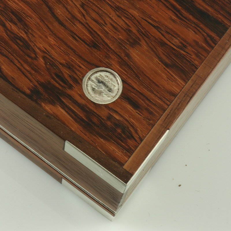 Hans Hansen. Æske i Rio-Palisander med indlagt sterling sølv. 1960erne