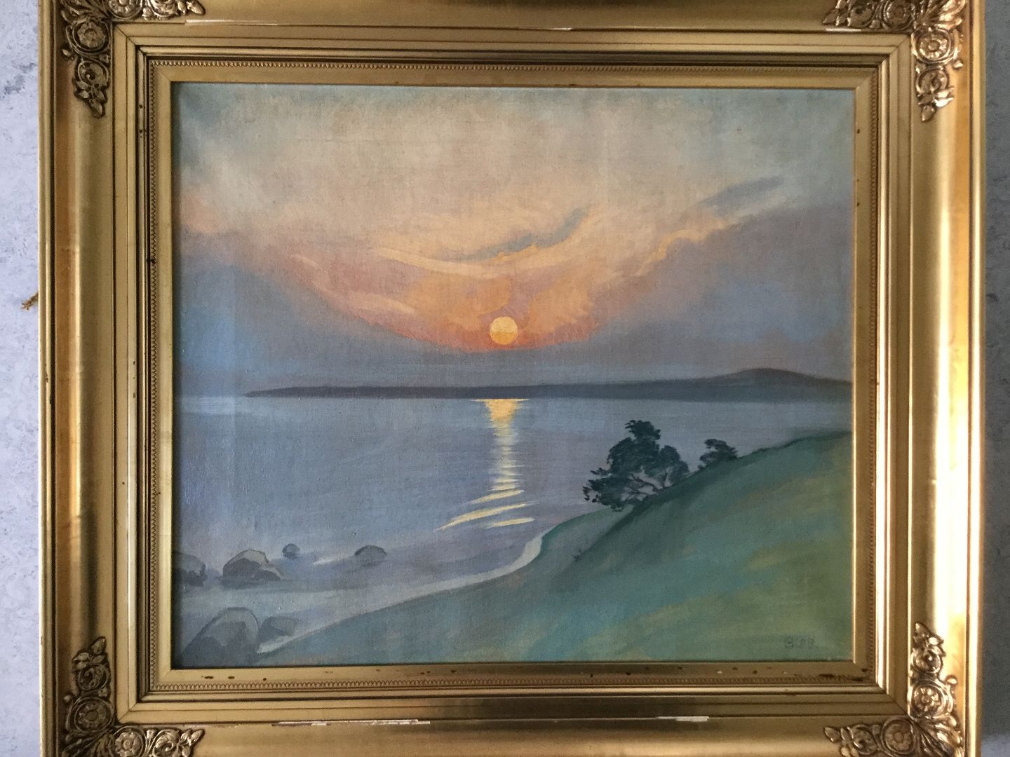 Maleri af Johannes Glob - Udsigt fra Villa Eta i Kalundborg 1918.