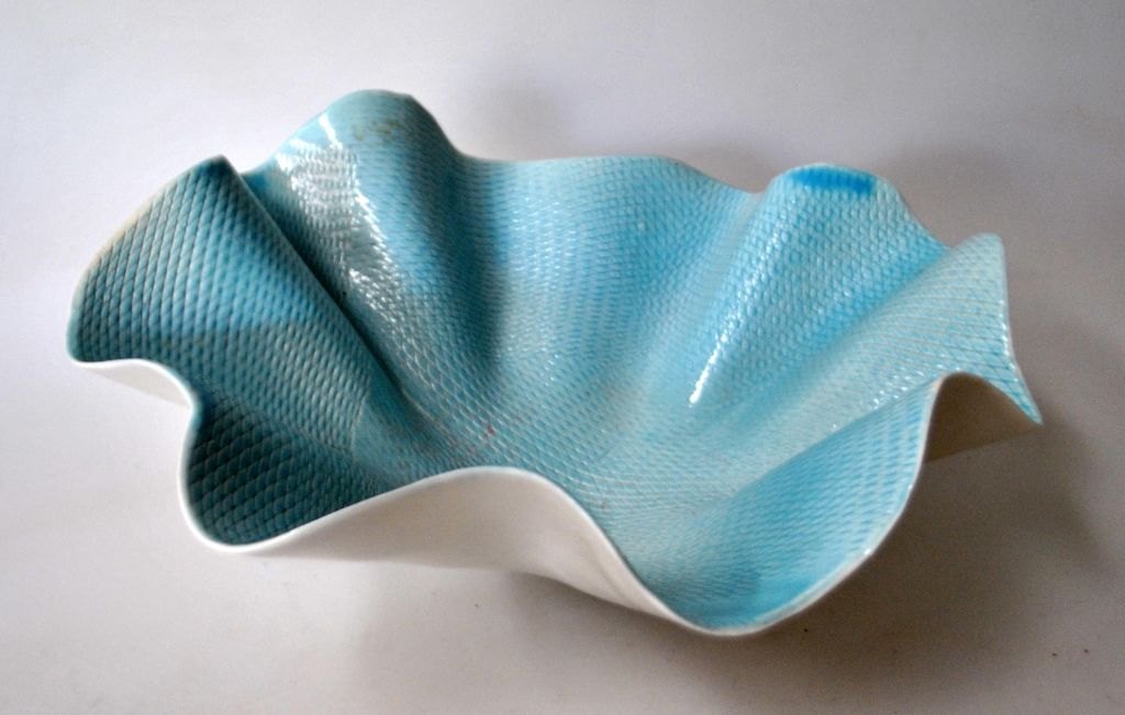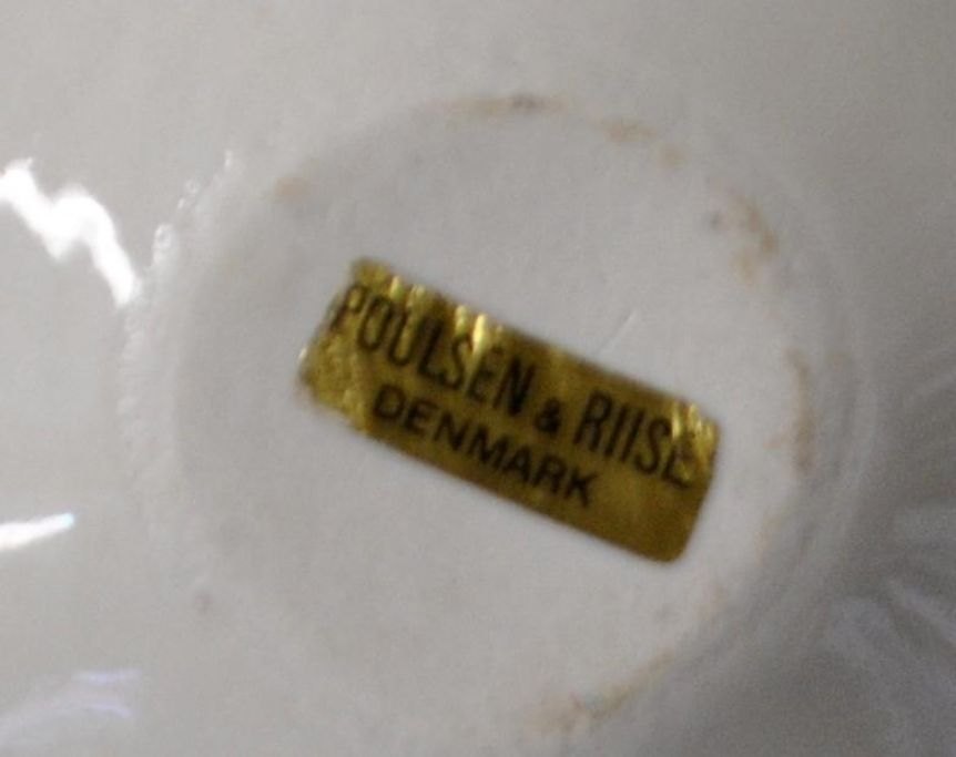 Poulsen & Riise bowl, 20th century Denmark. Porcelain. Light underside and turquoise upper, Ruffled edge. Diameter: 20 cm. H: 6 cm. With label.