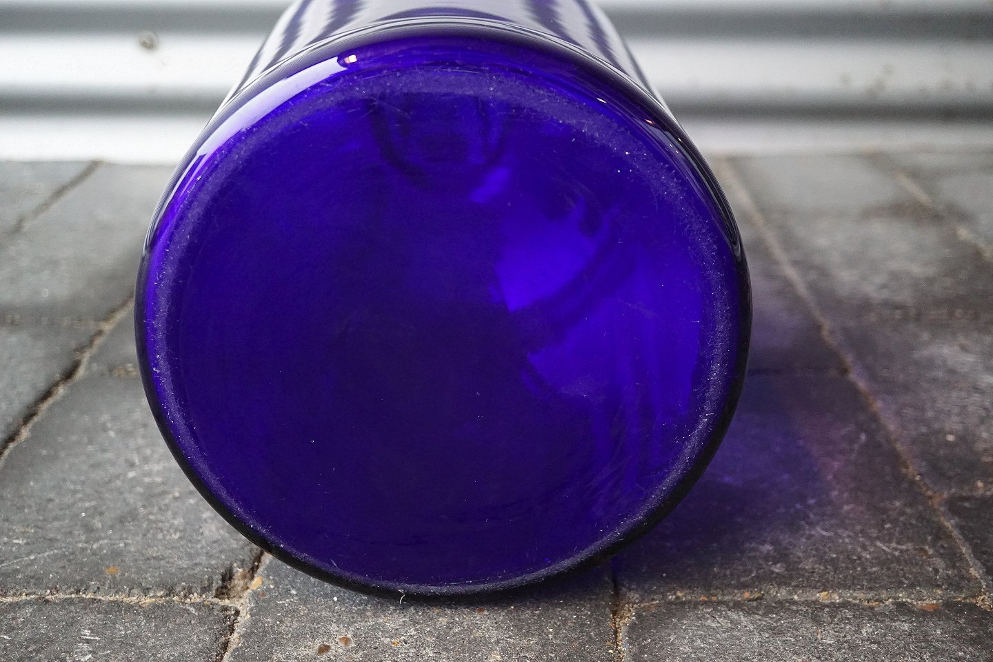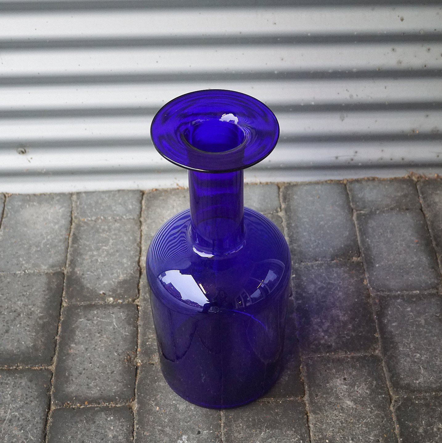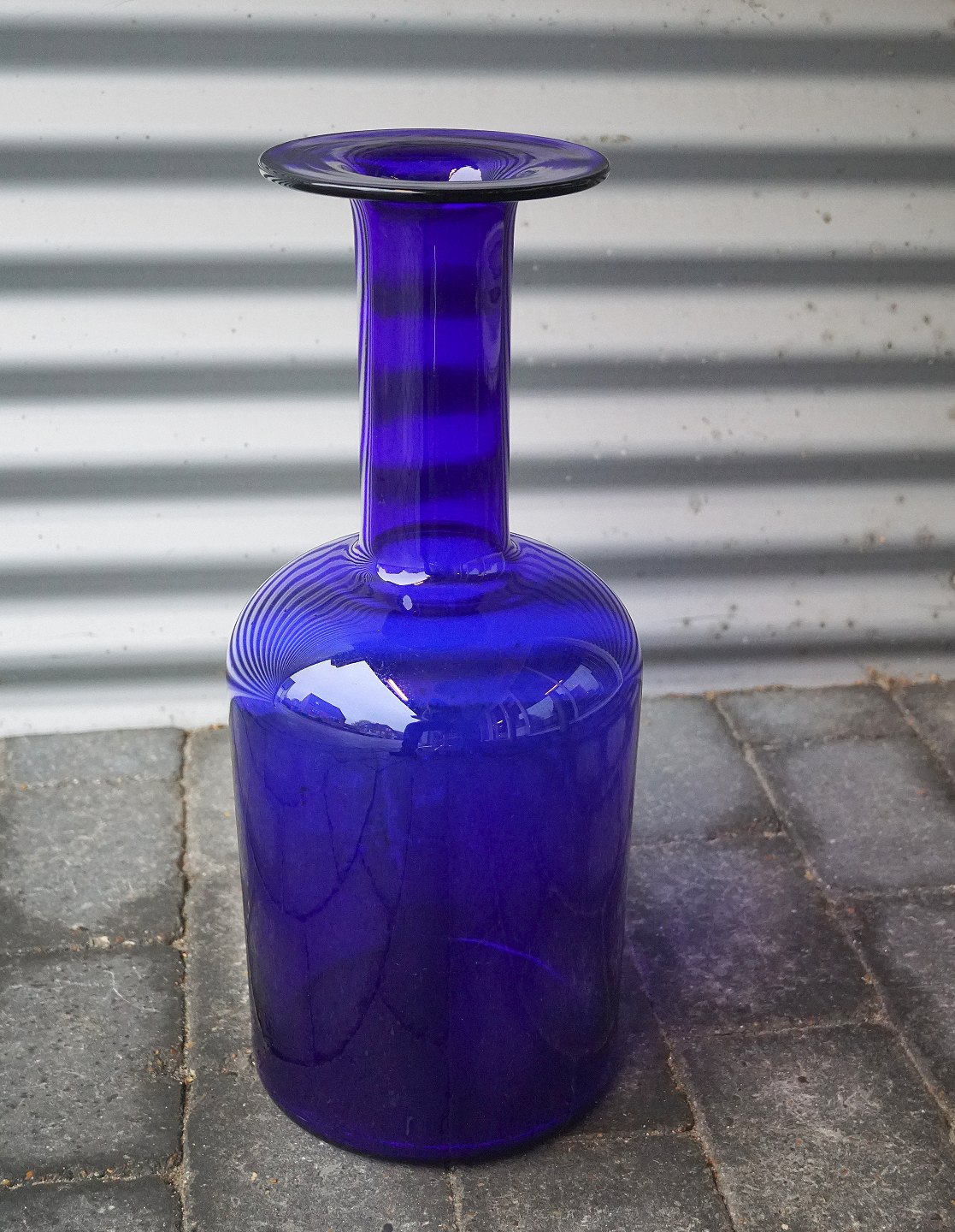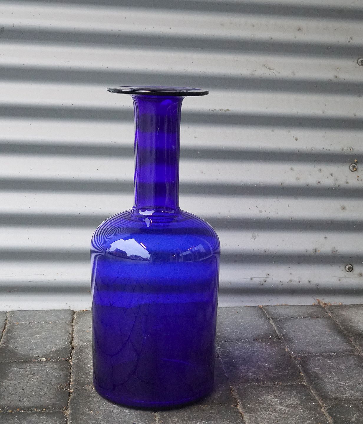 Otto Brauer, transparent koboltblå gulvvase i fin stand, arkivfoto