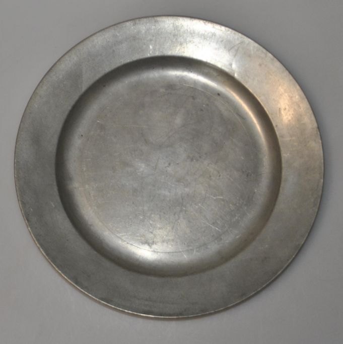 Pewter plate, 18th century. Stamped. Diameter: 23 cm.