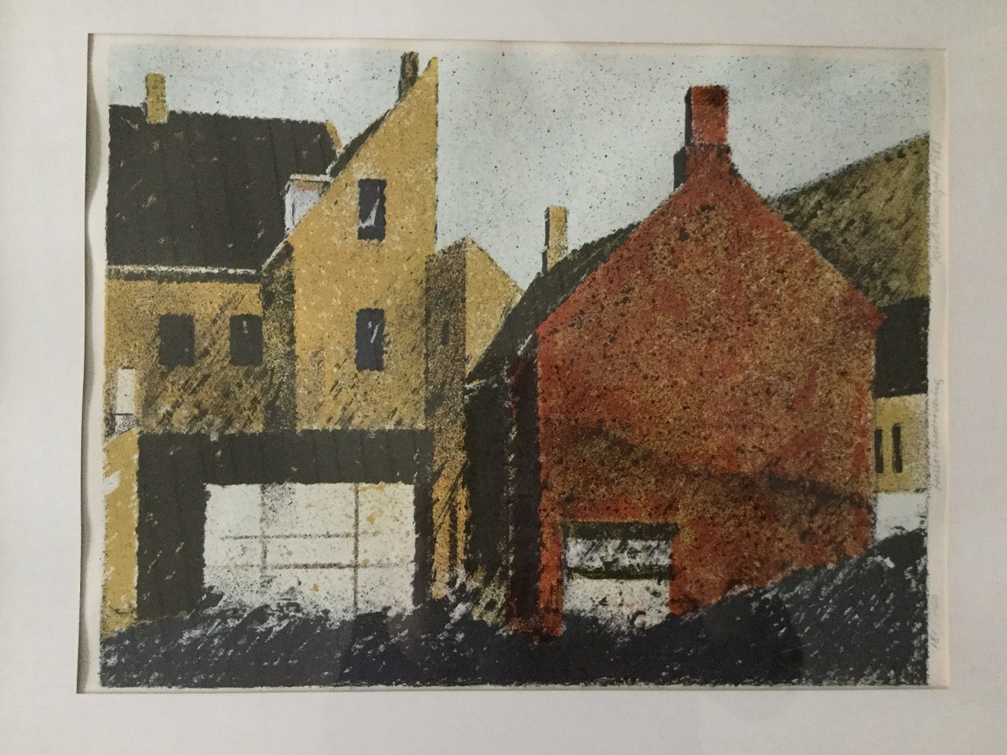 Litografi af Kurt Nedergaard - Huse- renovering 1983.