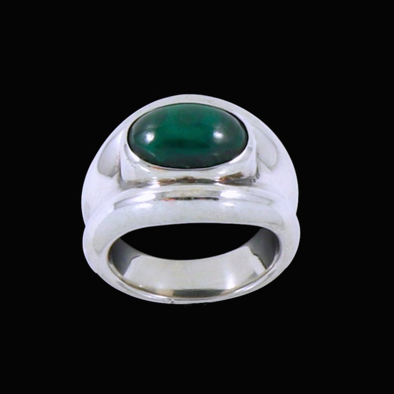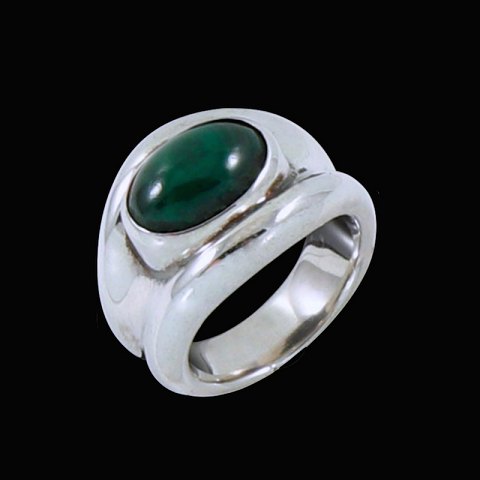 Hans Hansen. Ring i Sterling sølv med malakit. 1960'erne