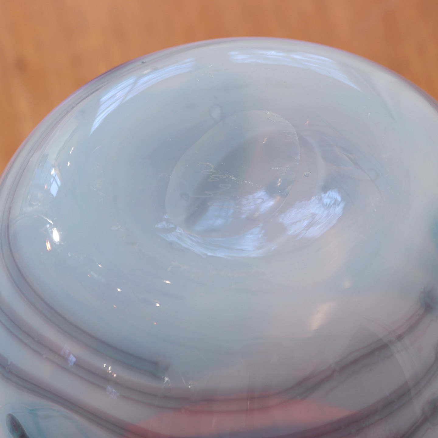Vase i kunstglas med utydelig siganatur i bunden lavet i 1992.