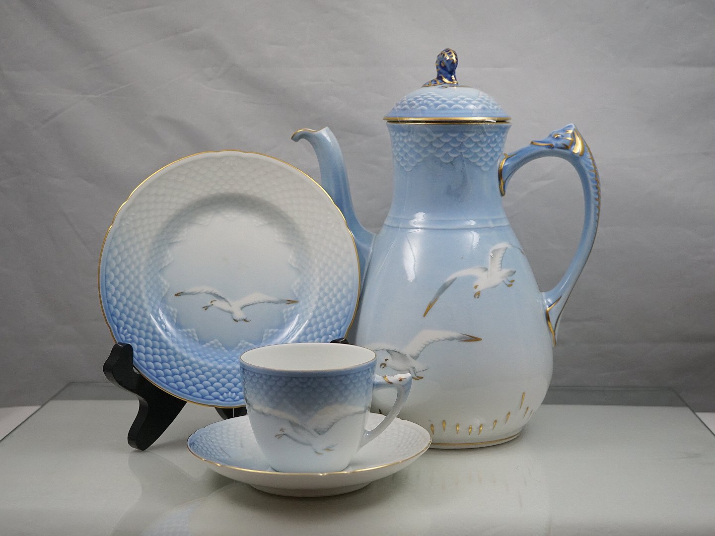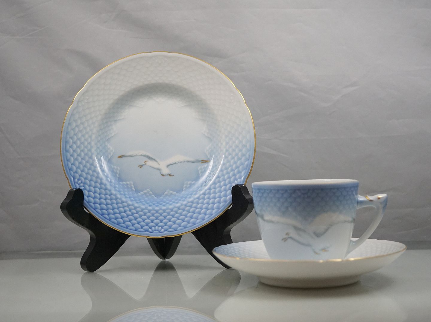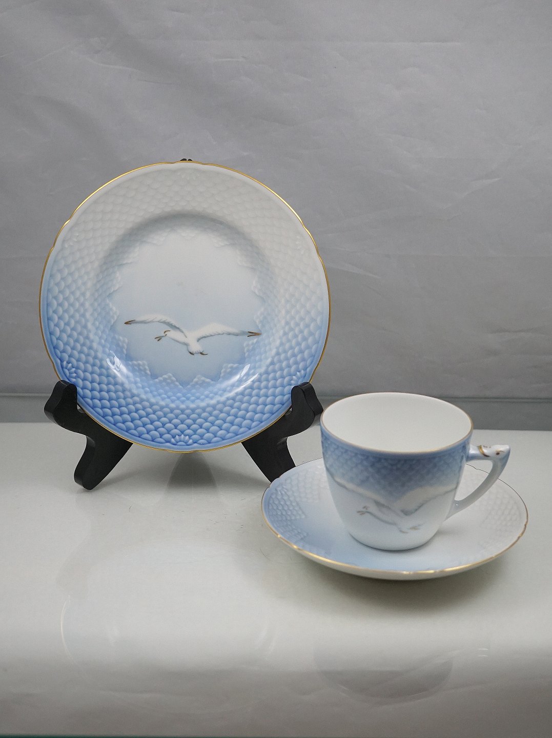 Bing og Grøndahl Måge kaffekop med guldkant med underkop og dessert