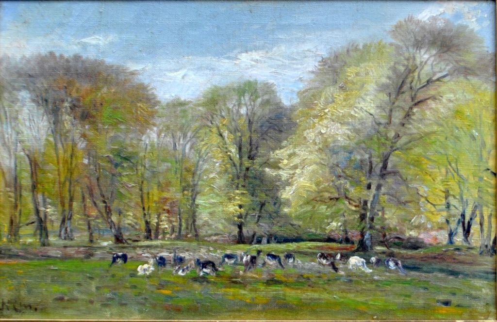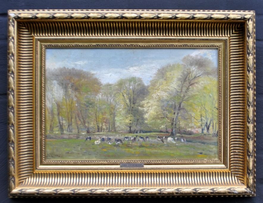 Christiansen, Niels Peter (1873 - 1960) Danmark: Dyr i Dyrehaven. Olie på lærred. Signeret.27 x 41 cm.