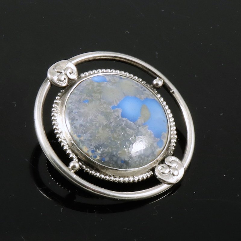 Erik Magnussen / Royal Copenhagen. Skønvirke Broche i Sølv med porcelæn.