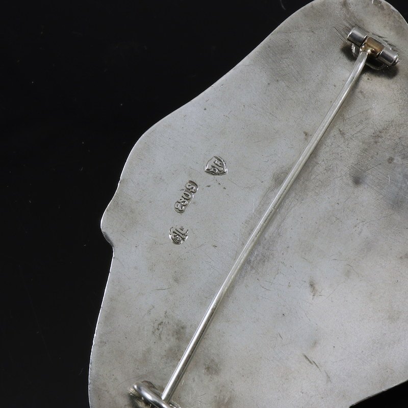 Grann & Laglye. Skønvirke Broche i sølv med rav.