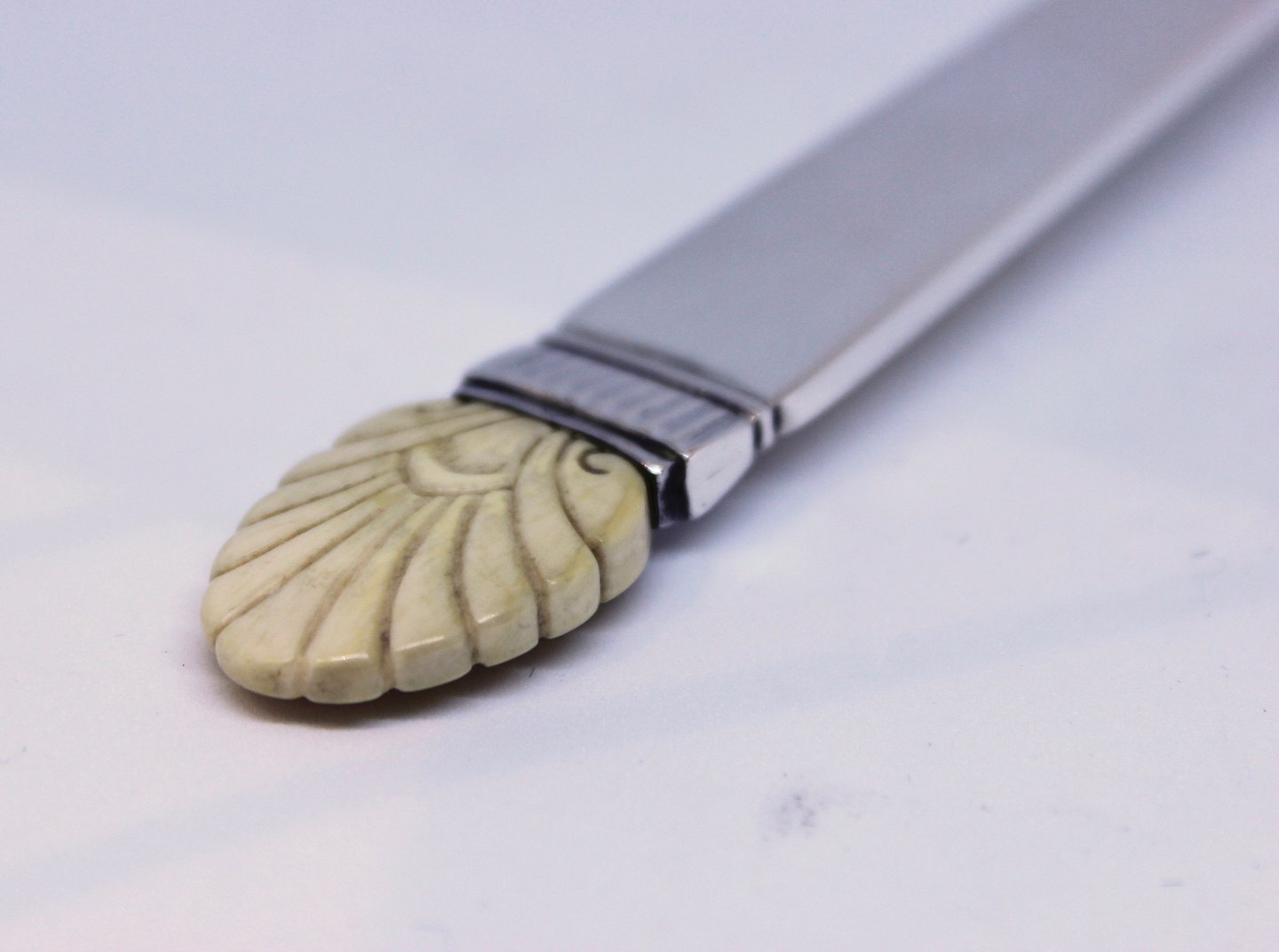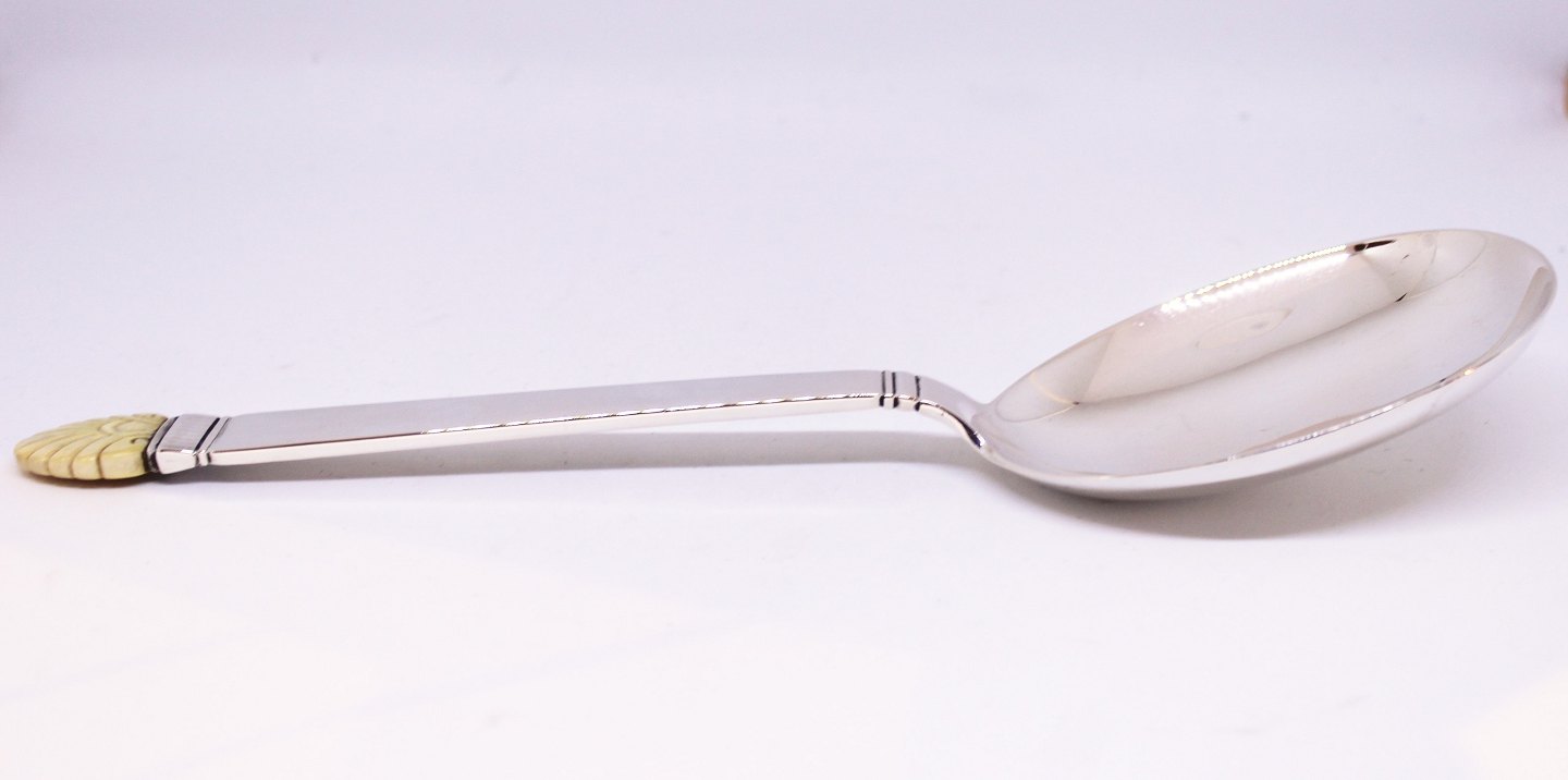 Serveringsske af tretårnet sølv og dekoreret med elfenben.
