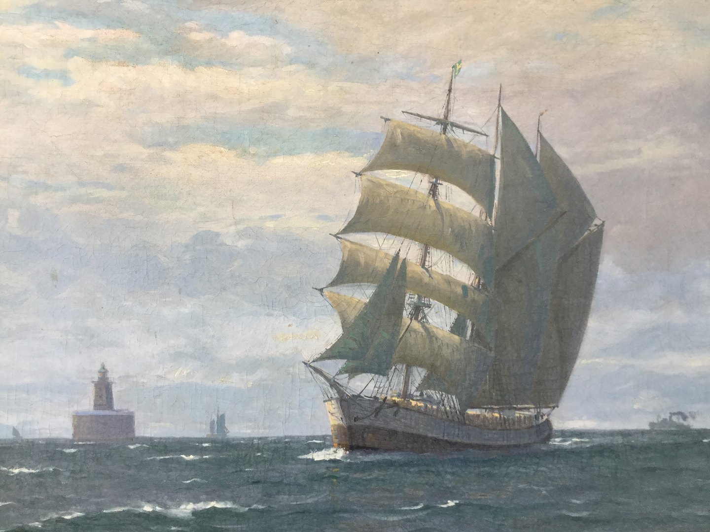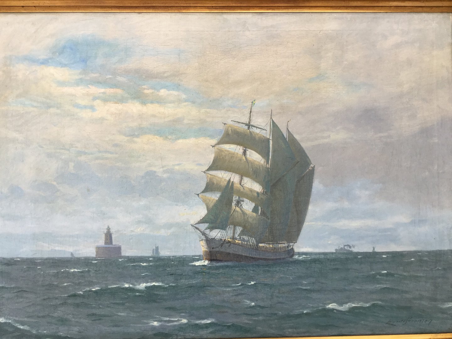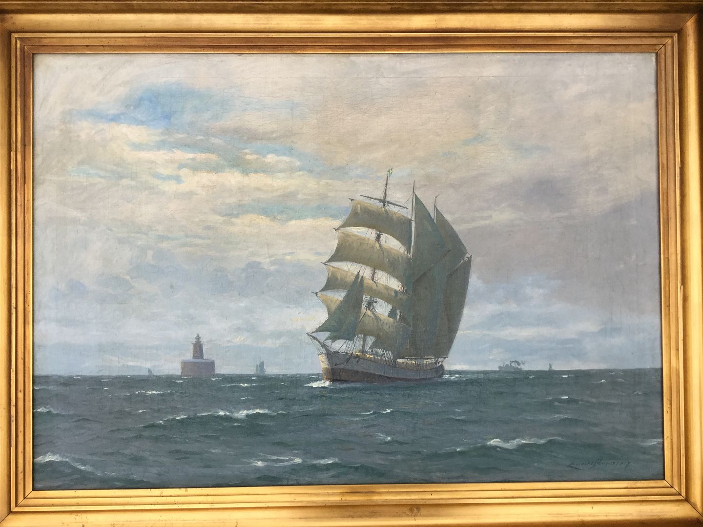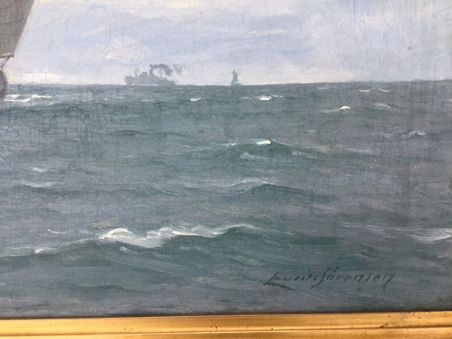 Maleri af Lauritz Sørensen - Skibe på havet.
