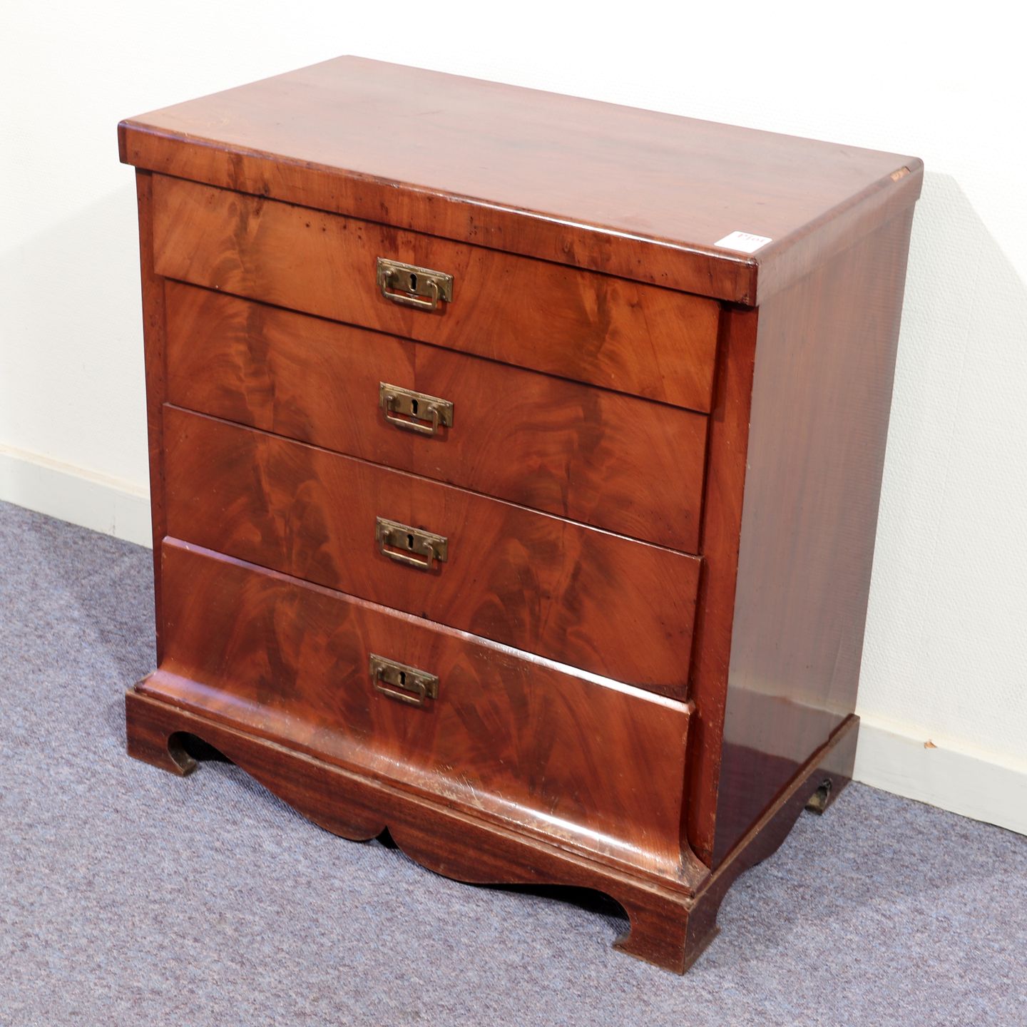 Kommode i fineret mahogni m. 4 skuffer, OBS div. aldersrelaterede brugsspor,