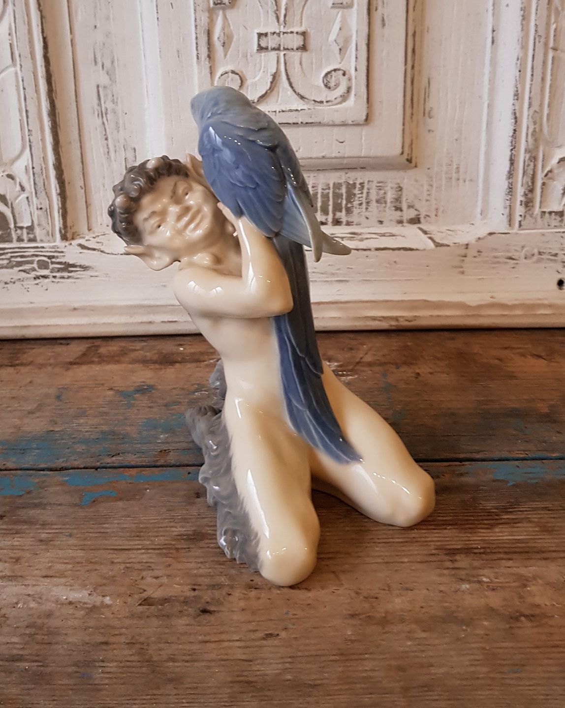 Royal Copenhagen figur - Faun med blå ara
