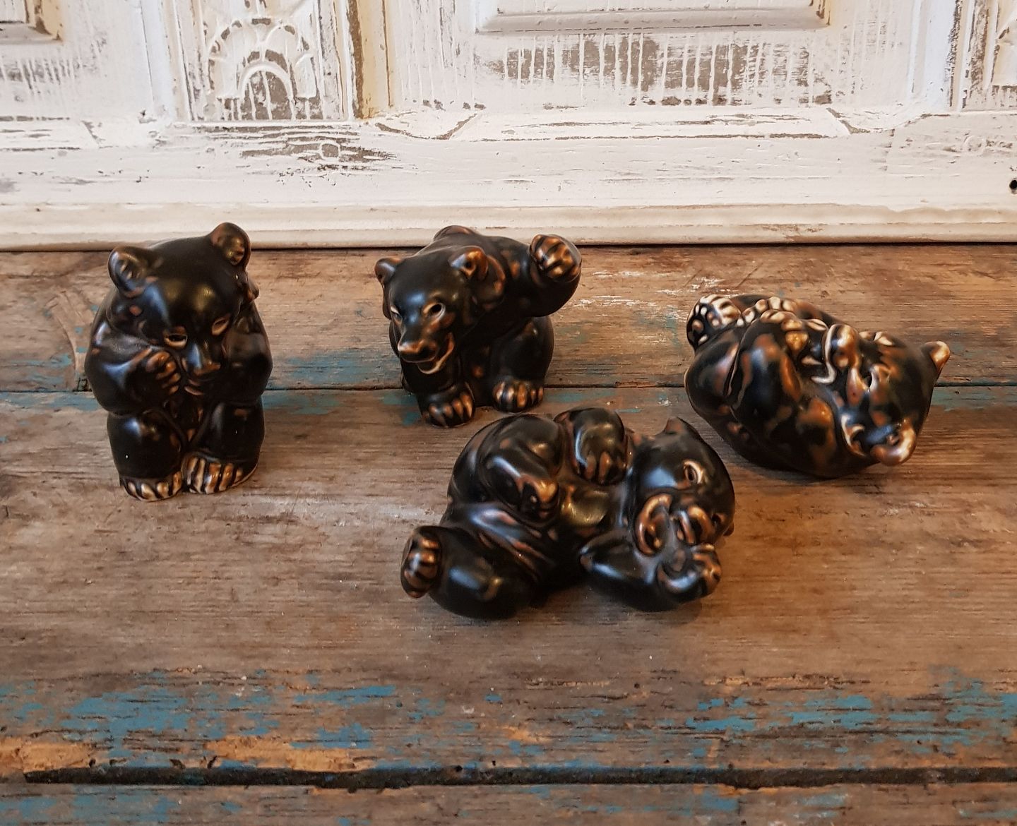 Royal Copenhagen - Brune bjørne unger i stentøj af Knud Kyhn no. 21432-21433-21434-21435