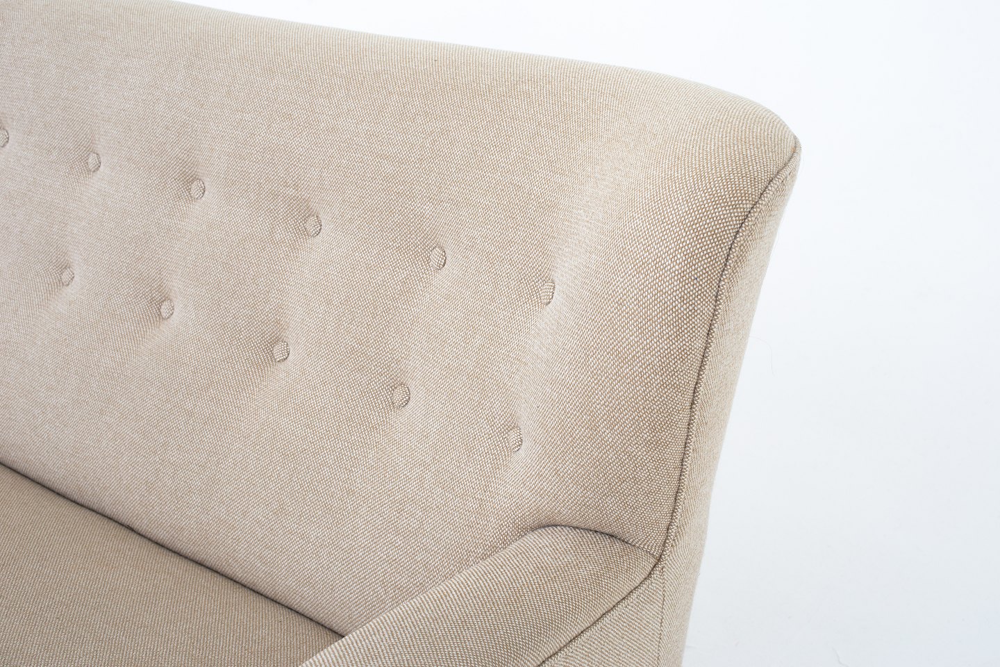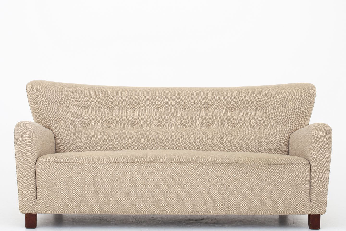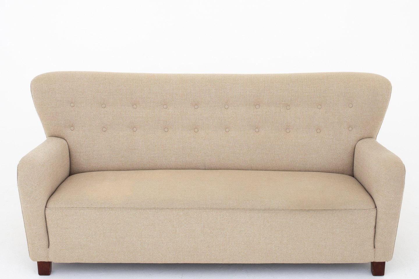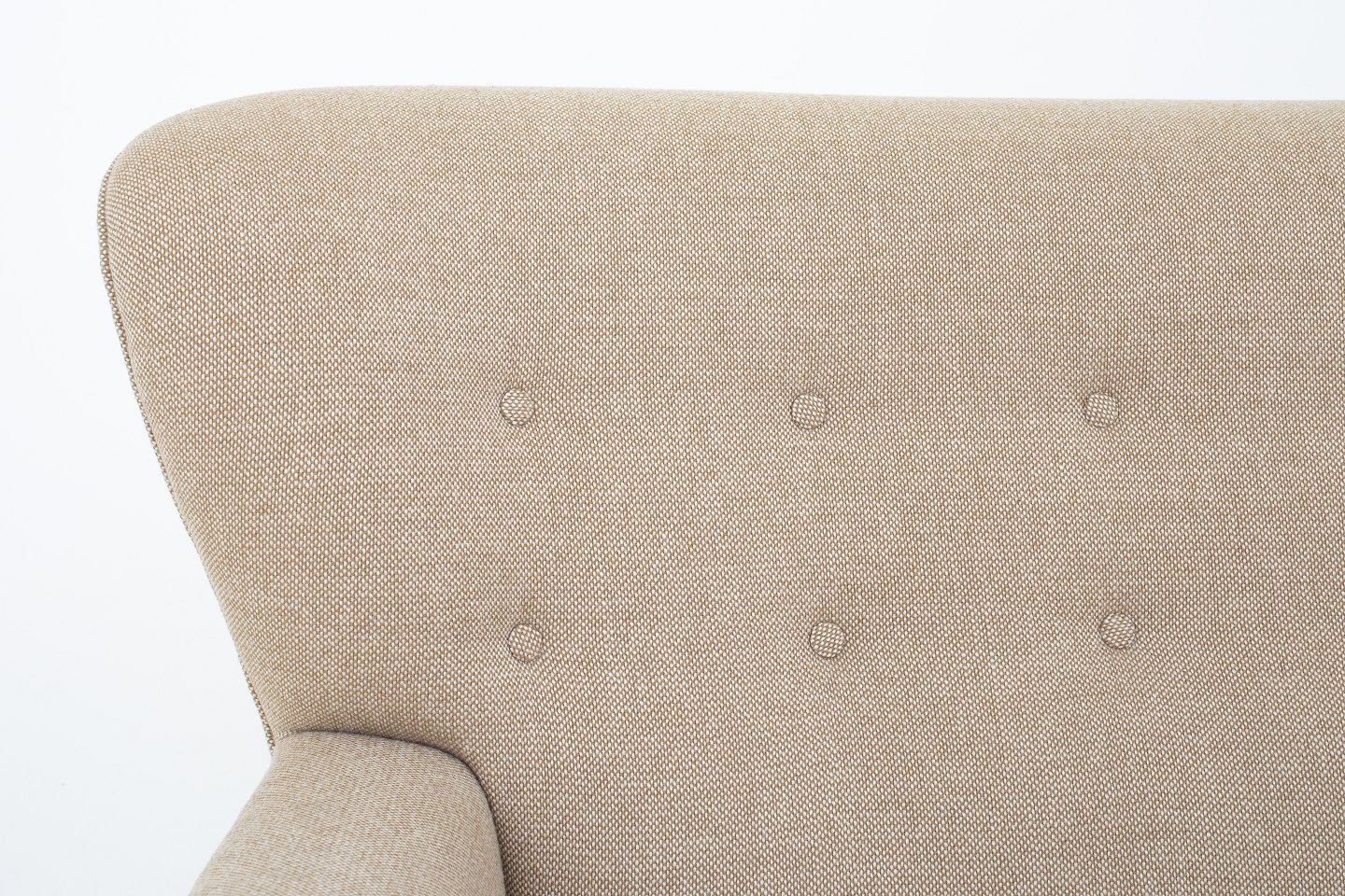Sofa i original beige Hallingdal uld med ben i bejdset bøg.