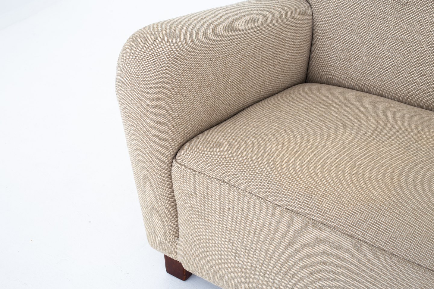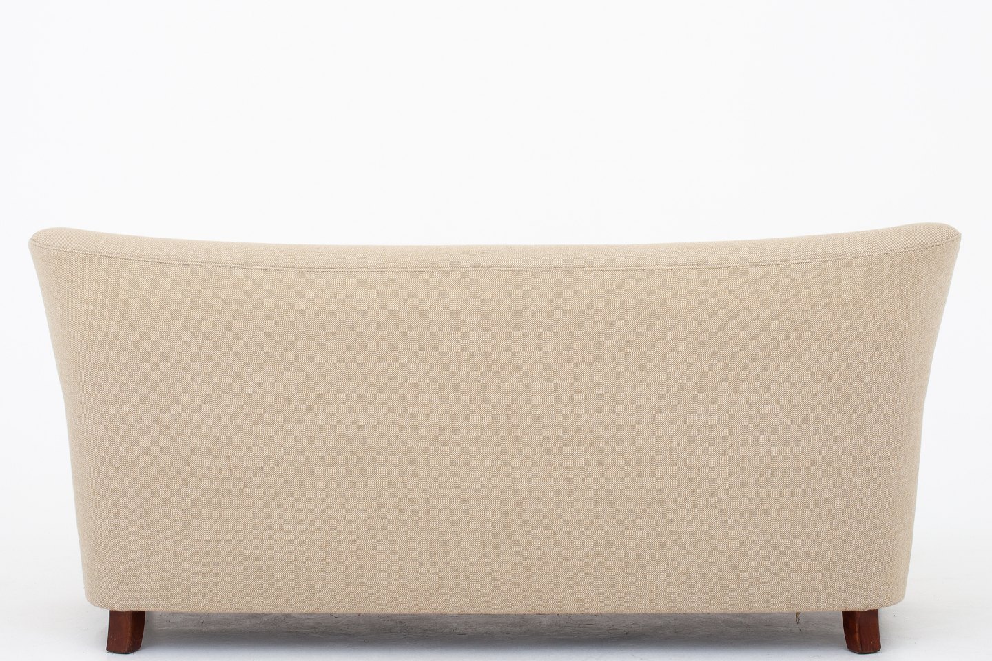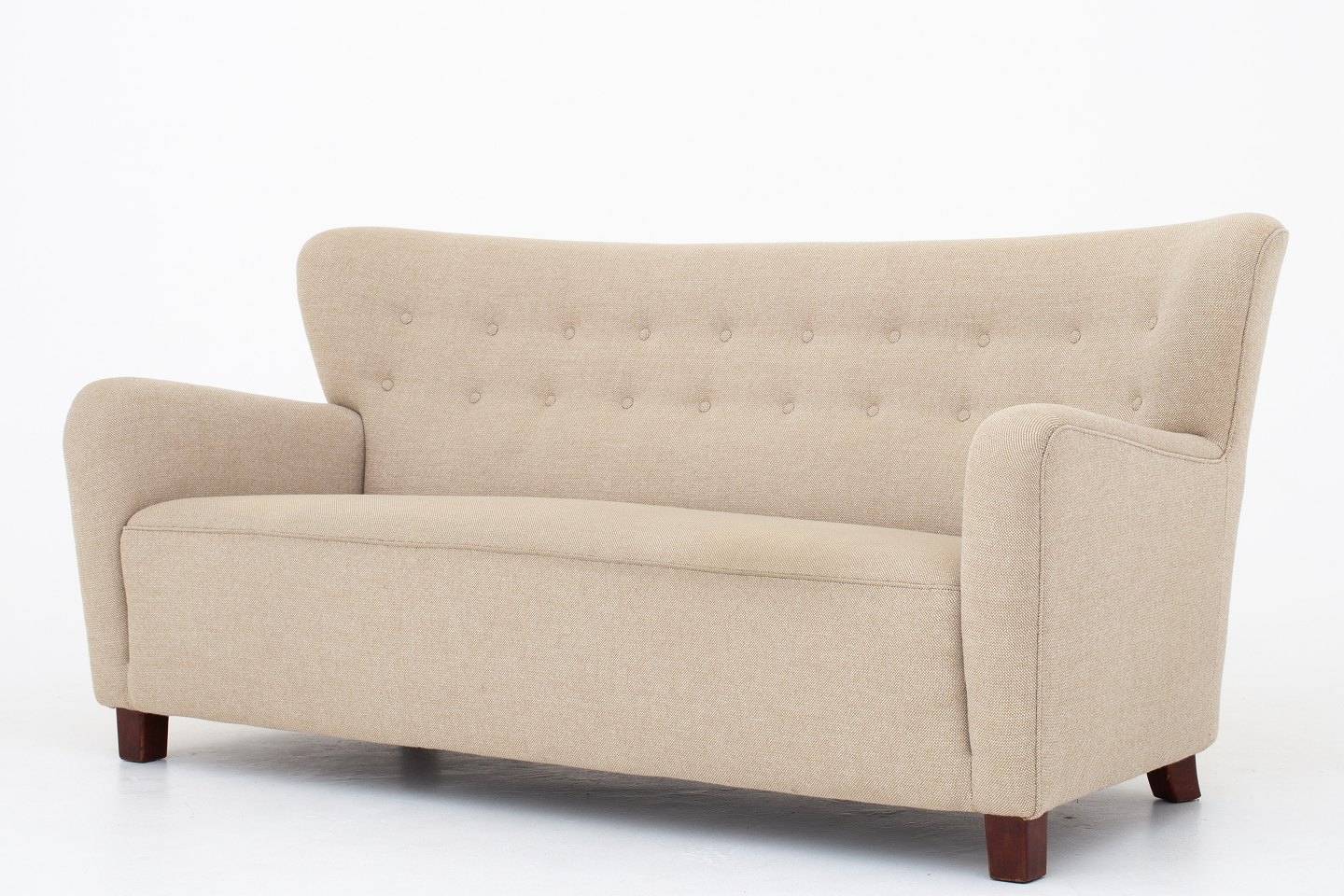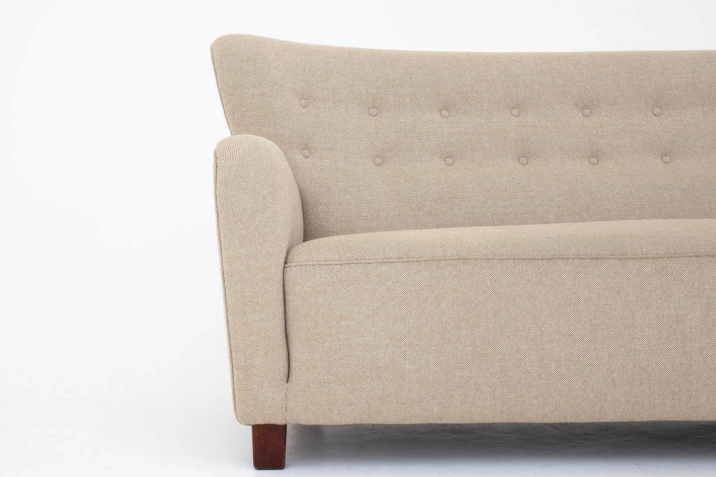 Sofa i original beige Hallingdal uld med ben i bejdset bøg.