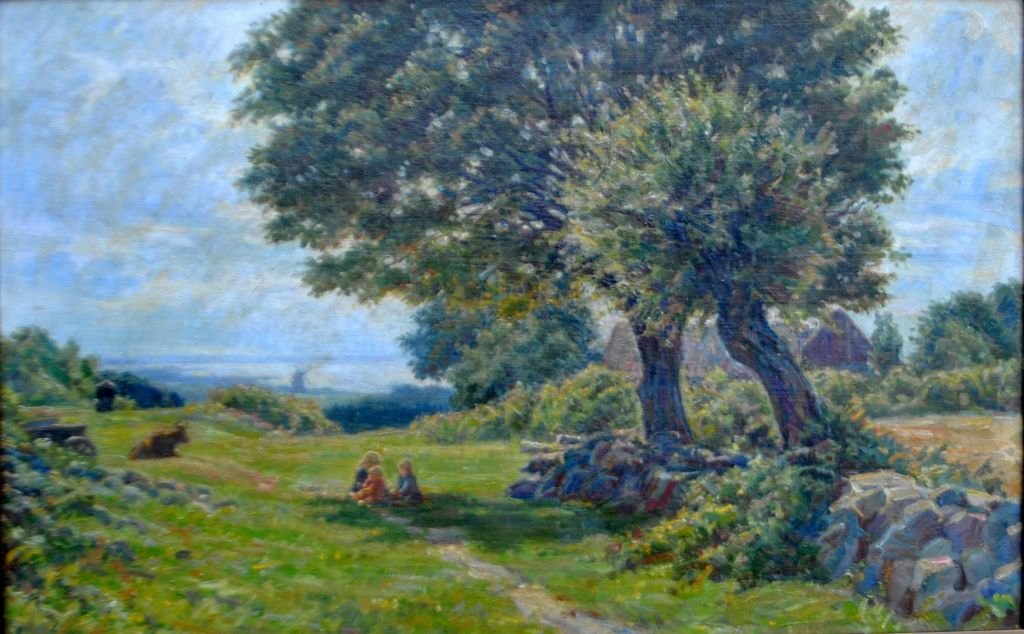 Rud-Petersen, Rudolf Siegfried (1871 - 1961) Danmark. Tre legende børn under et træ
