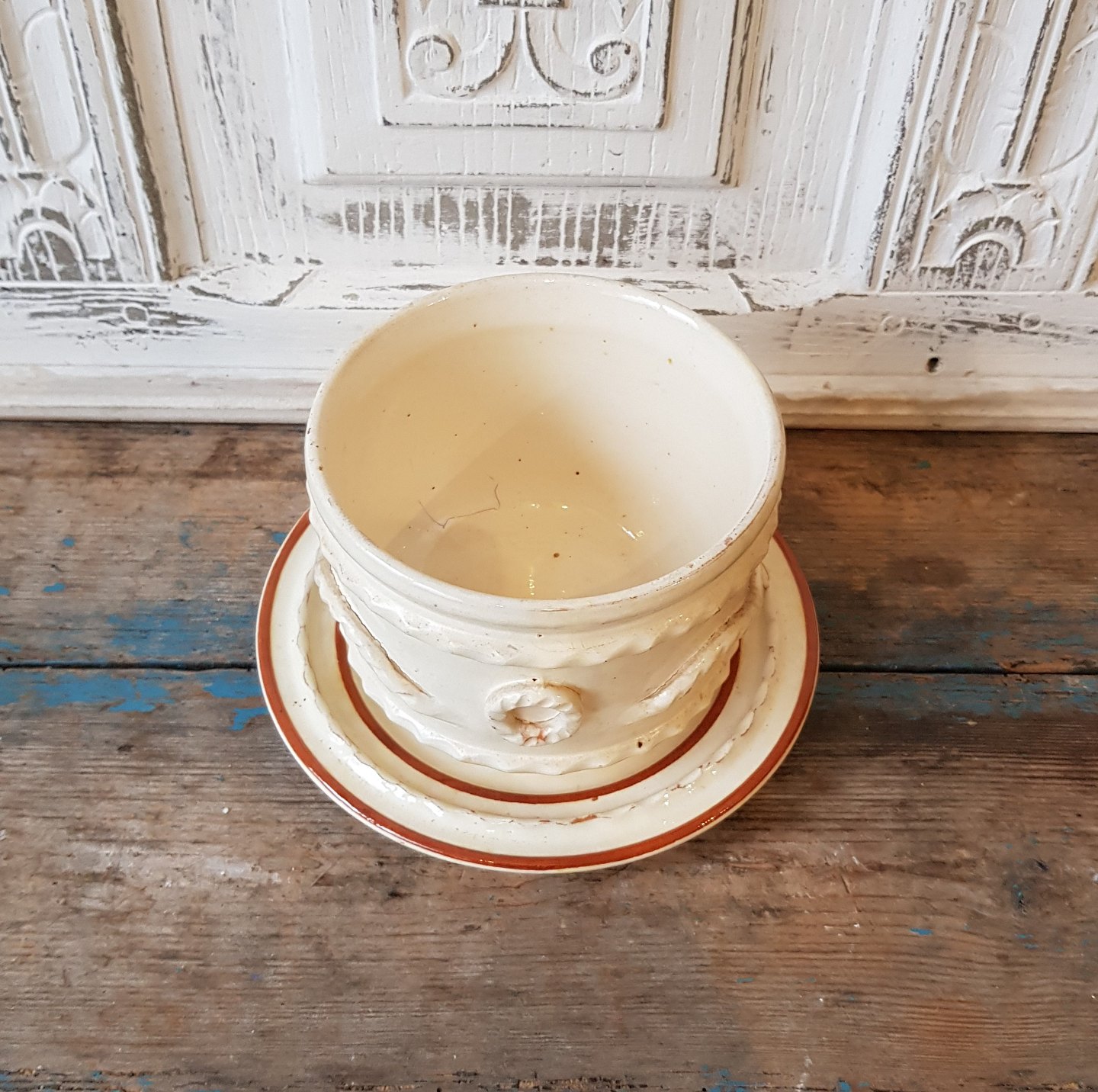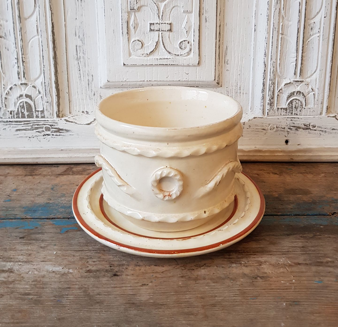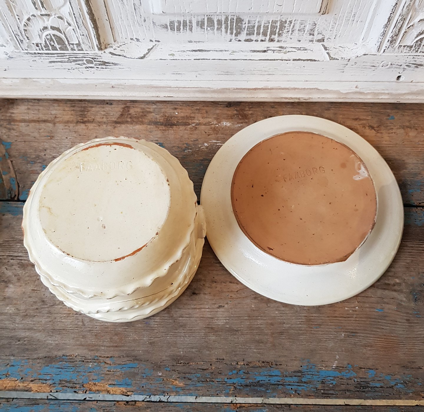 Seidelin - Faaborg cremefarvede keramik poste skål med underfad.