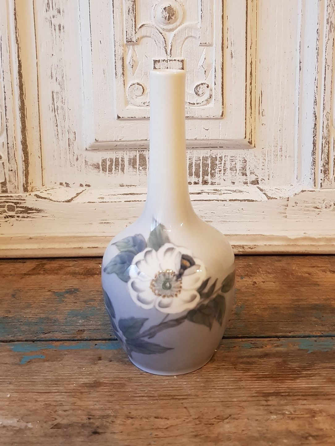 Royal Copenhagen vase dekoreret med hyben rose