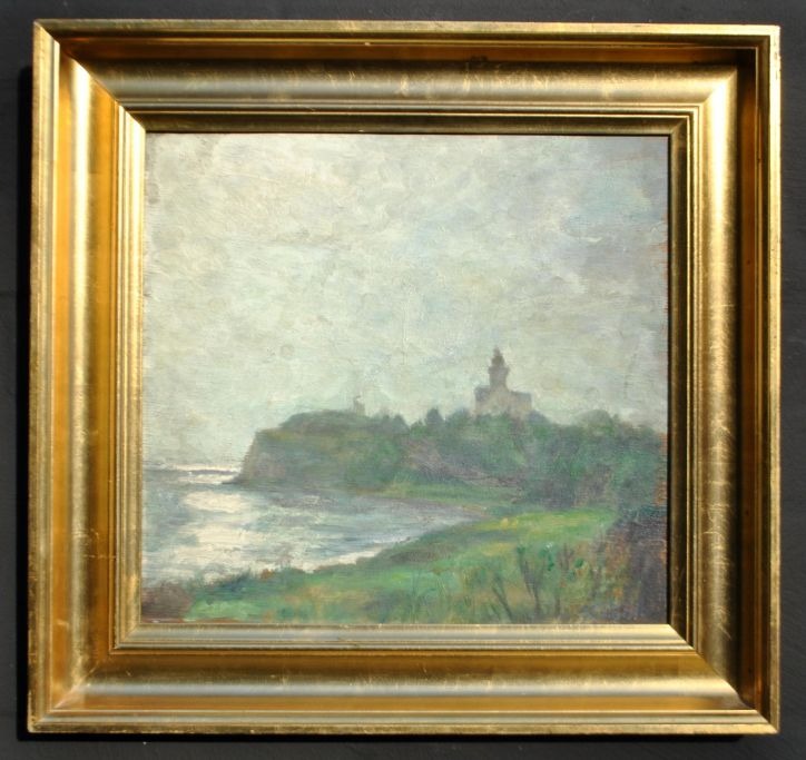 Sohl, Will (Wilhelm Albert Friedrich Leonhard) (1906 - 1969) Germany: Landscape with lighthouse. Oil on wooden board. Signed. 33 x 35 cm. Framed. Probably motive from Sylt. Provenance: Old Danish painting collection.