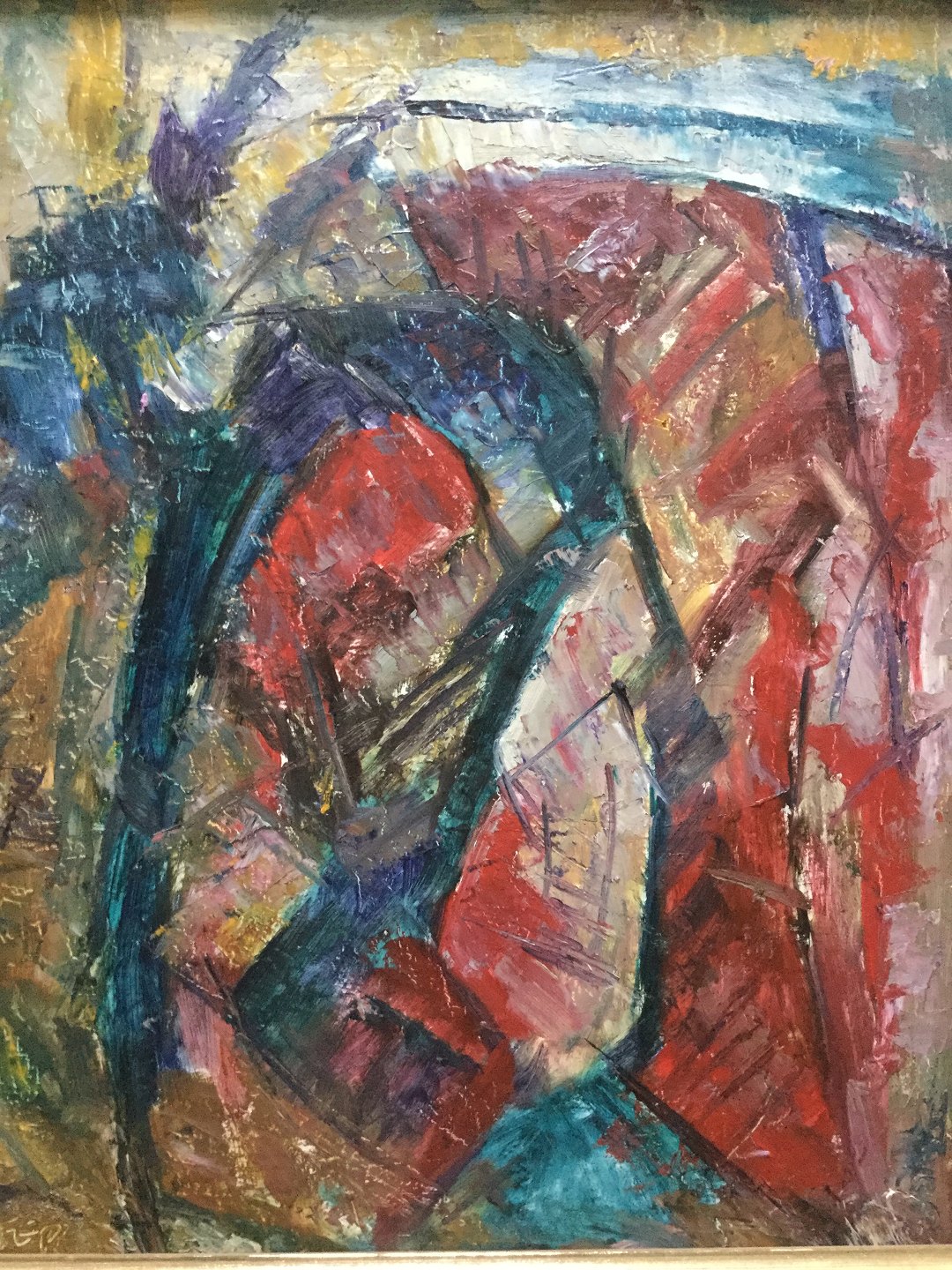 Maleri af Kai-Erik Petersen - Komposition med ansigt.