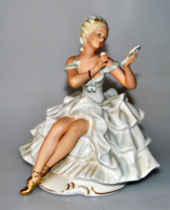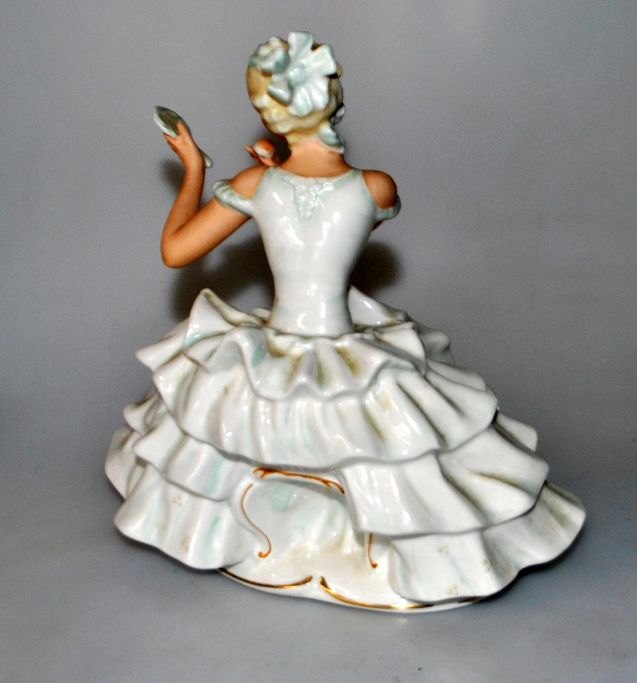 Porcelæns figur af siddende danser, Schaubach, Wallendorf, 1940 - 1953, Tyskland.