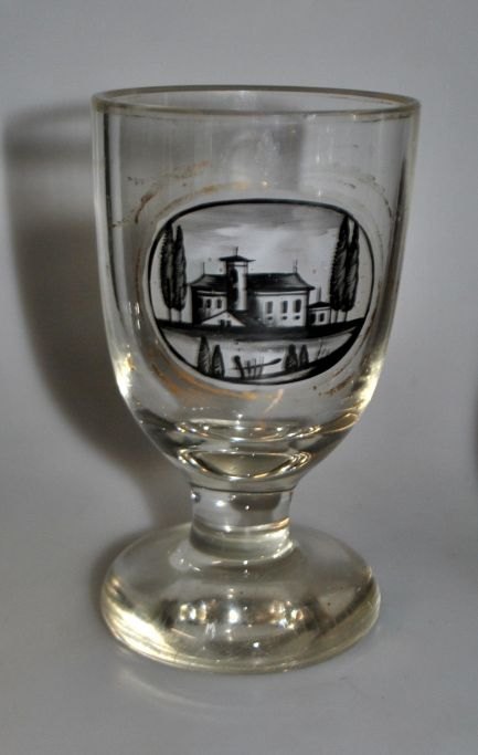 Antikt tysk glas med emalje dekoration, 19. årh.