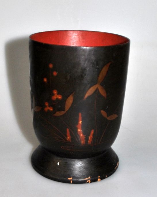 Japansk lak bæger, 19. årh. Dekoreret med bladværk. H.:11,5 cm.