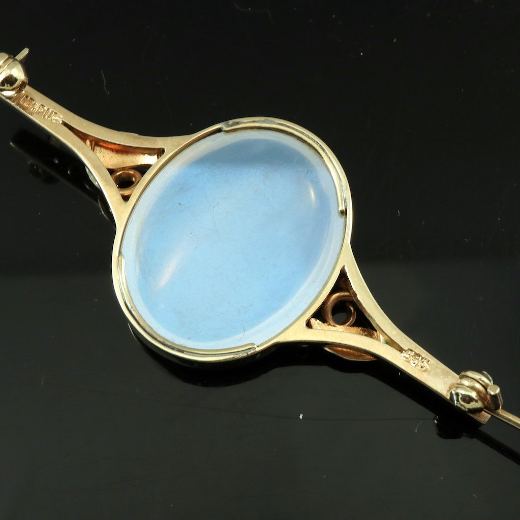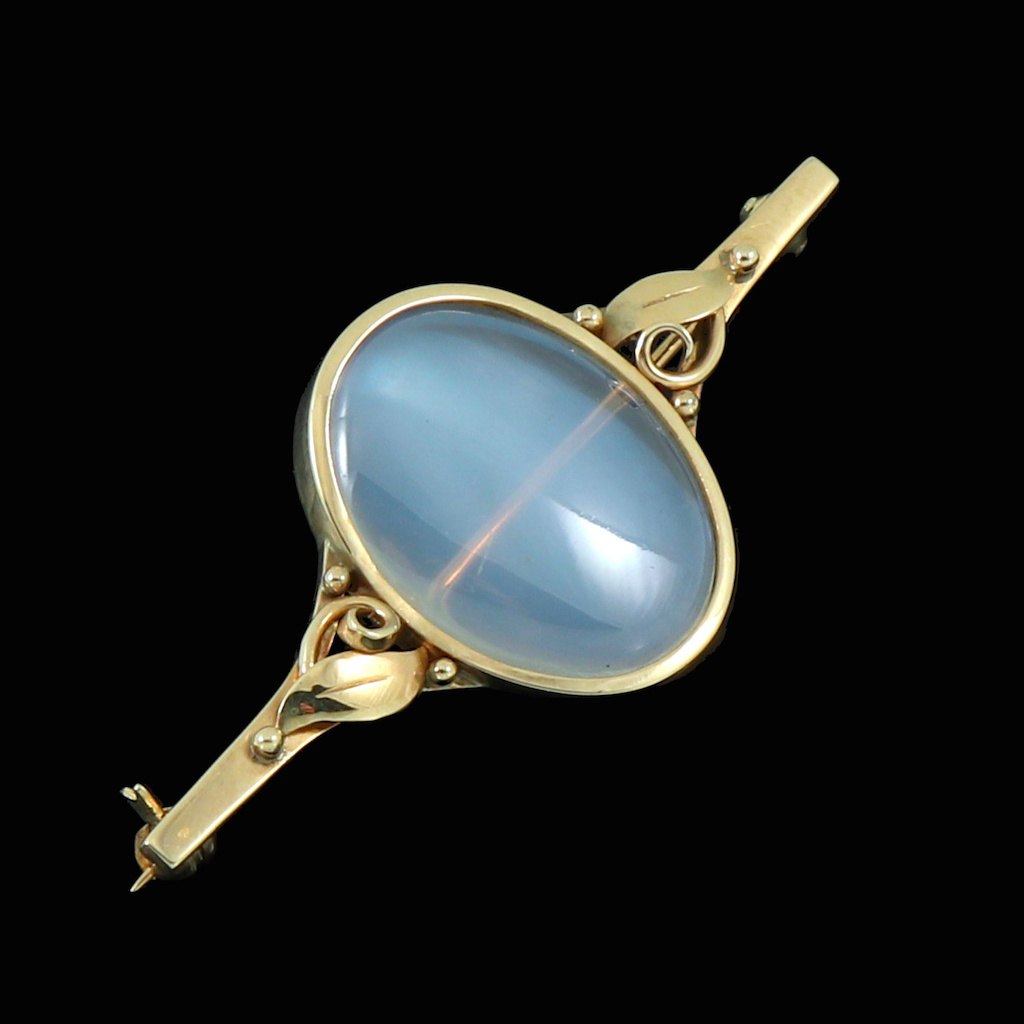 Ib Due. Skønvirke Broche i 14k Guld med månesten.